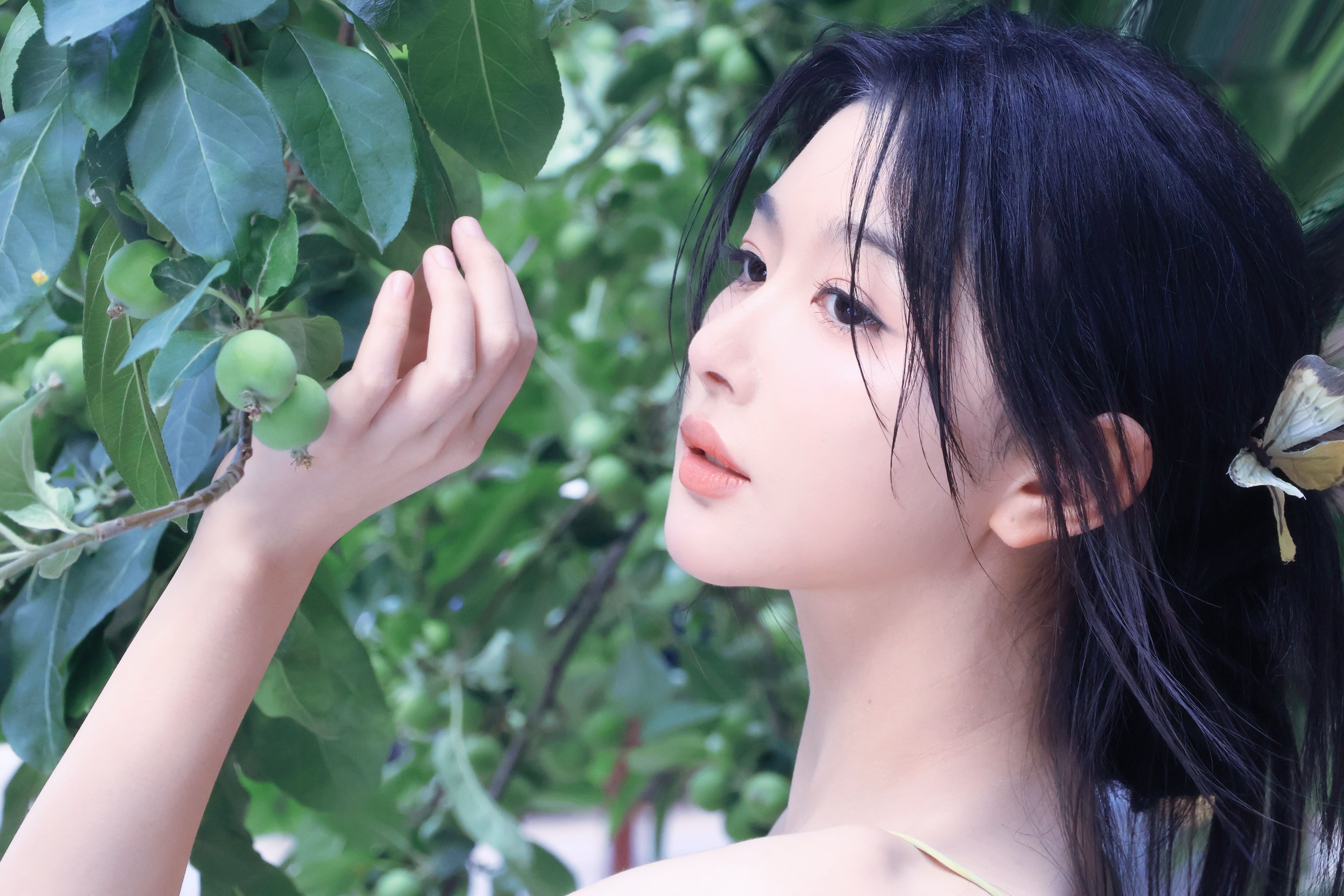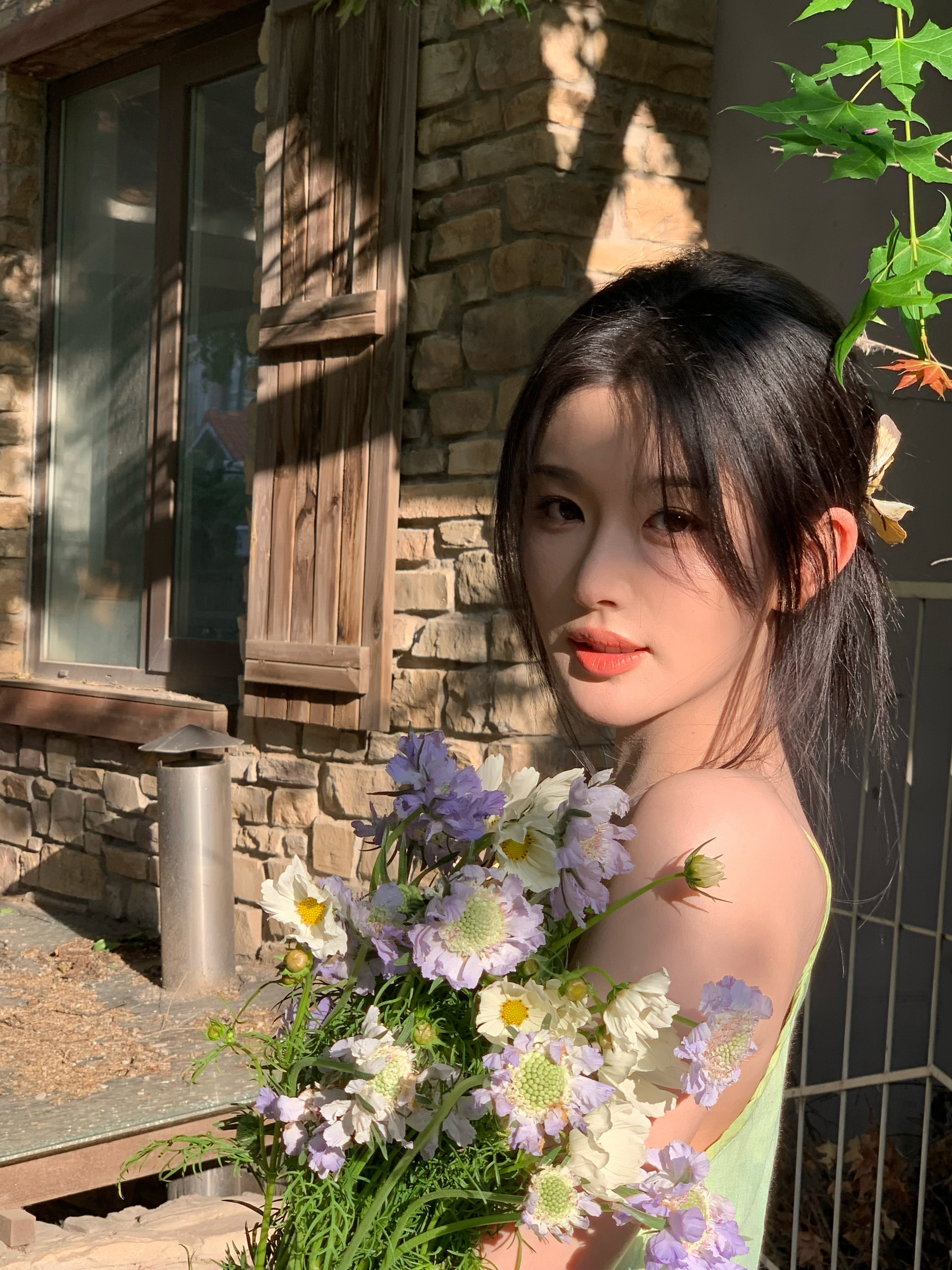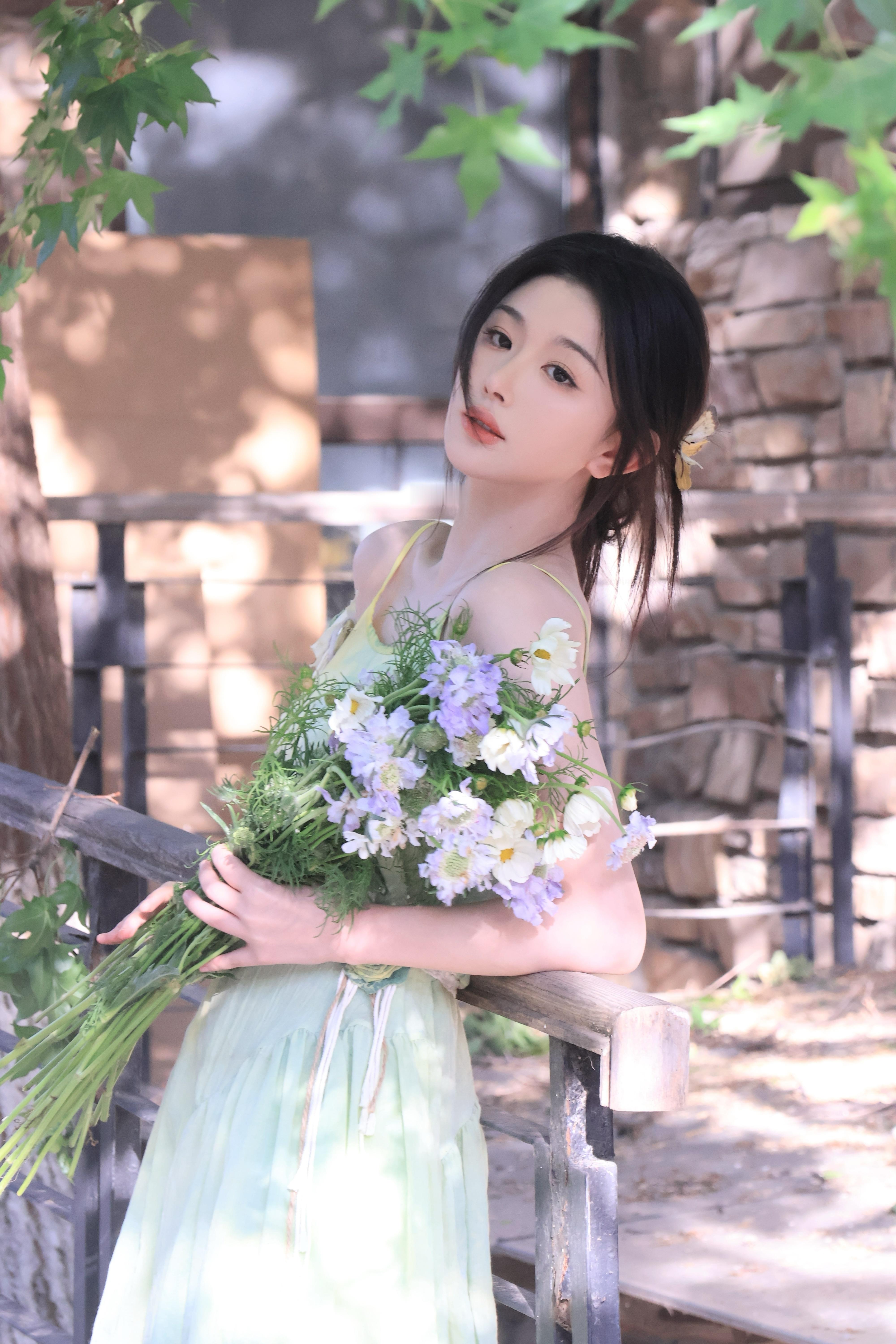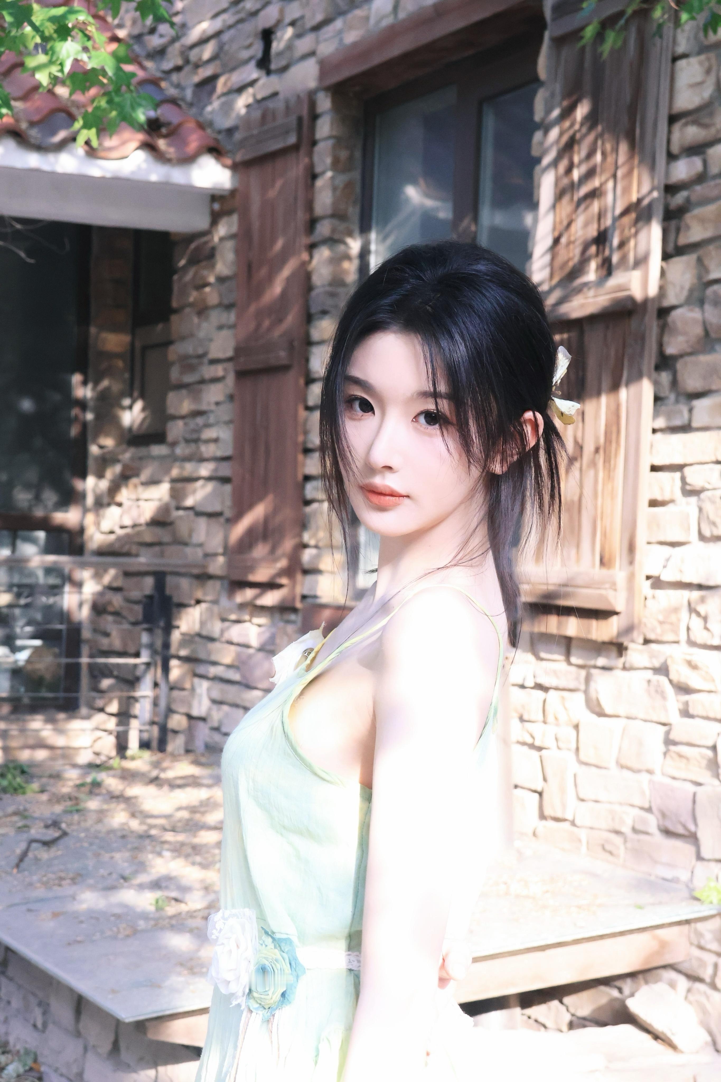 孔雪儿绿色吊带裙:听夏末蝉鸣,观秋初叶落​​​