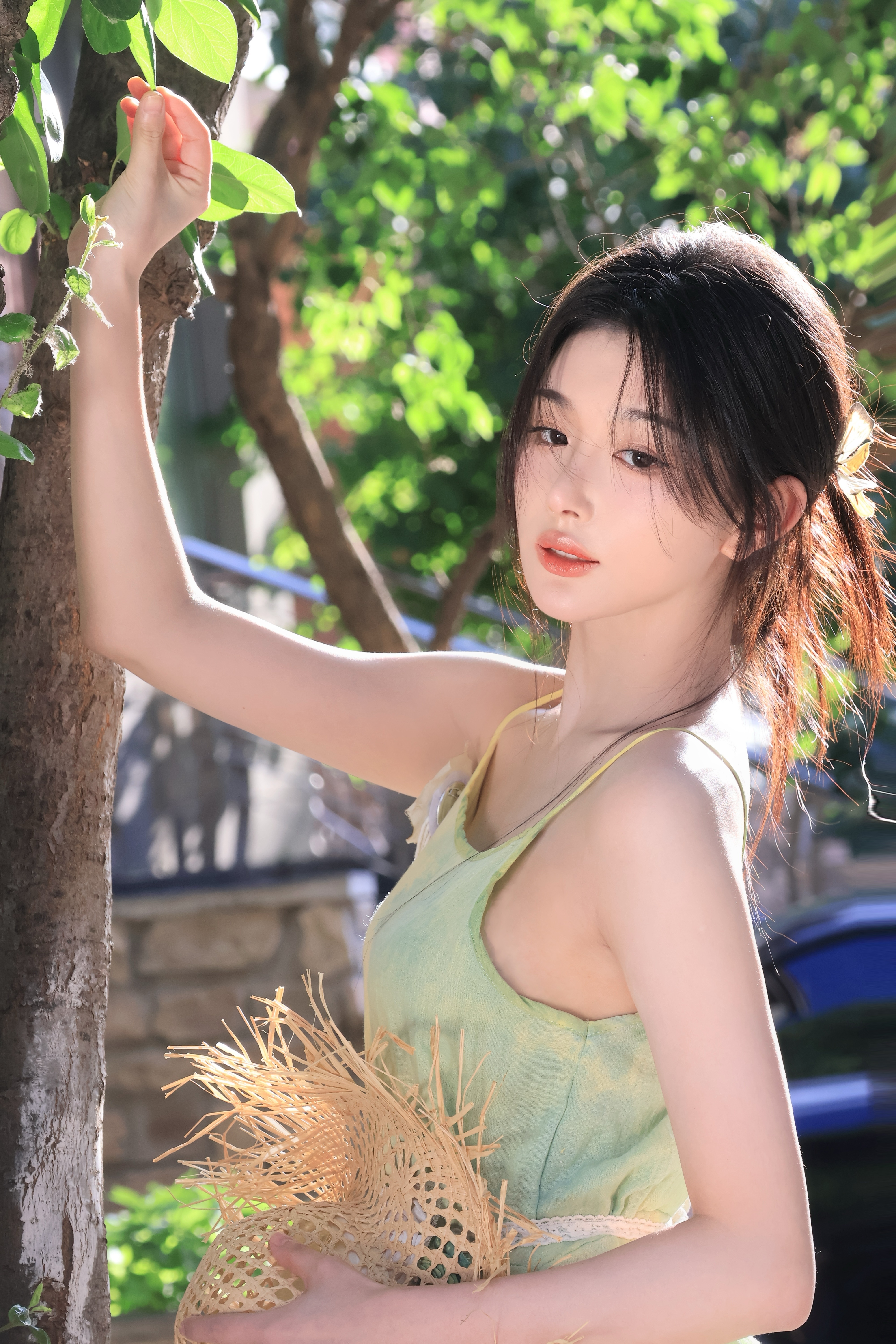 孔雪儿绿色吊带裙:听夏末蝉鸣,观秋初叶落 ​​​