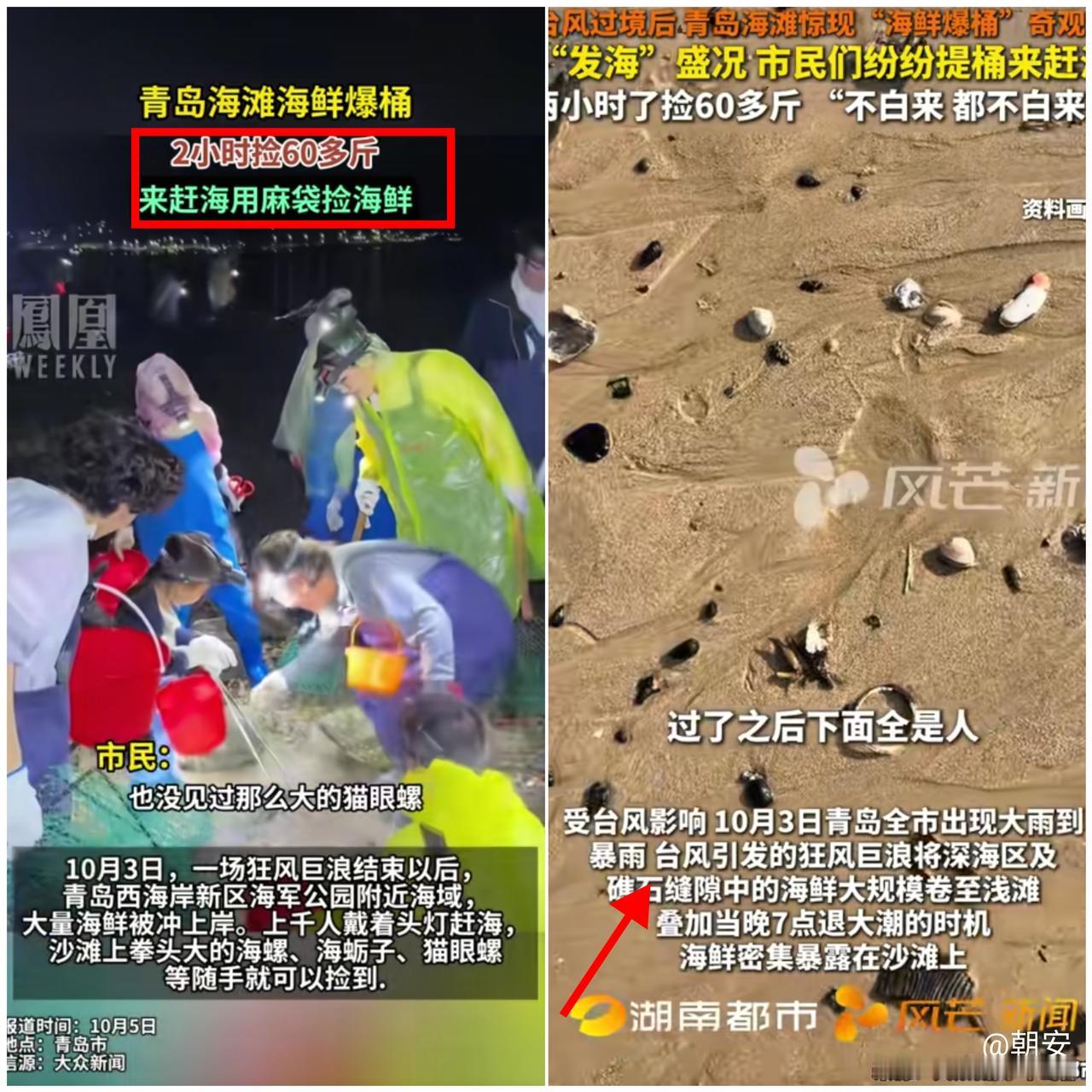 青岛人最近也太幸福了吧! 狂风巨浪过后,海军公园海滩直接 变成“海鲜自助场”,