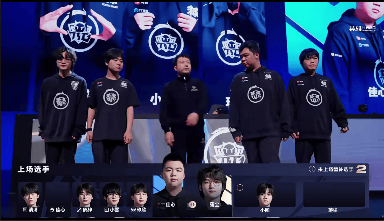 TTG第三局前进行大师轮换,清清佳心换下,小困落尘换上