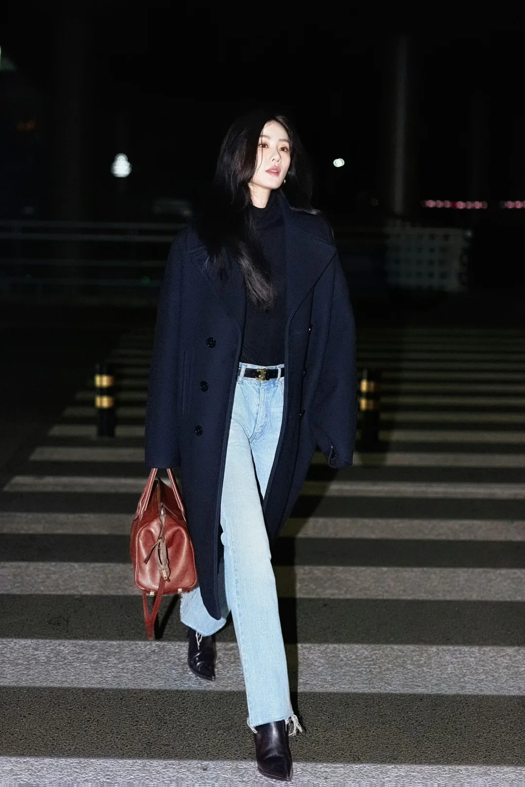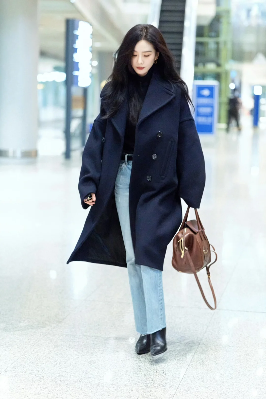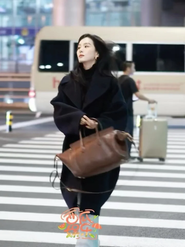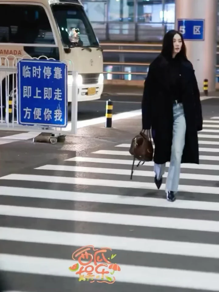 机场过斑马线这几步,完全就走成了自己的秀场T台。
