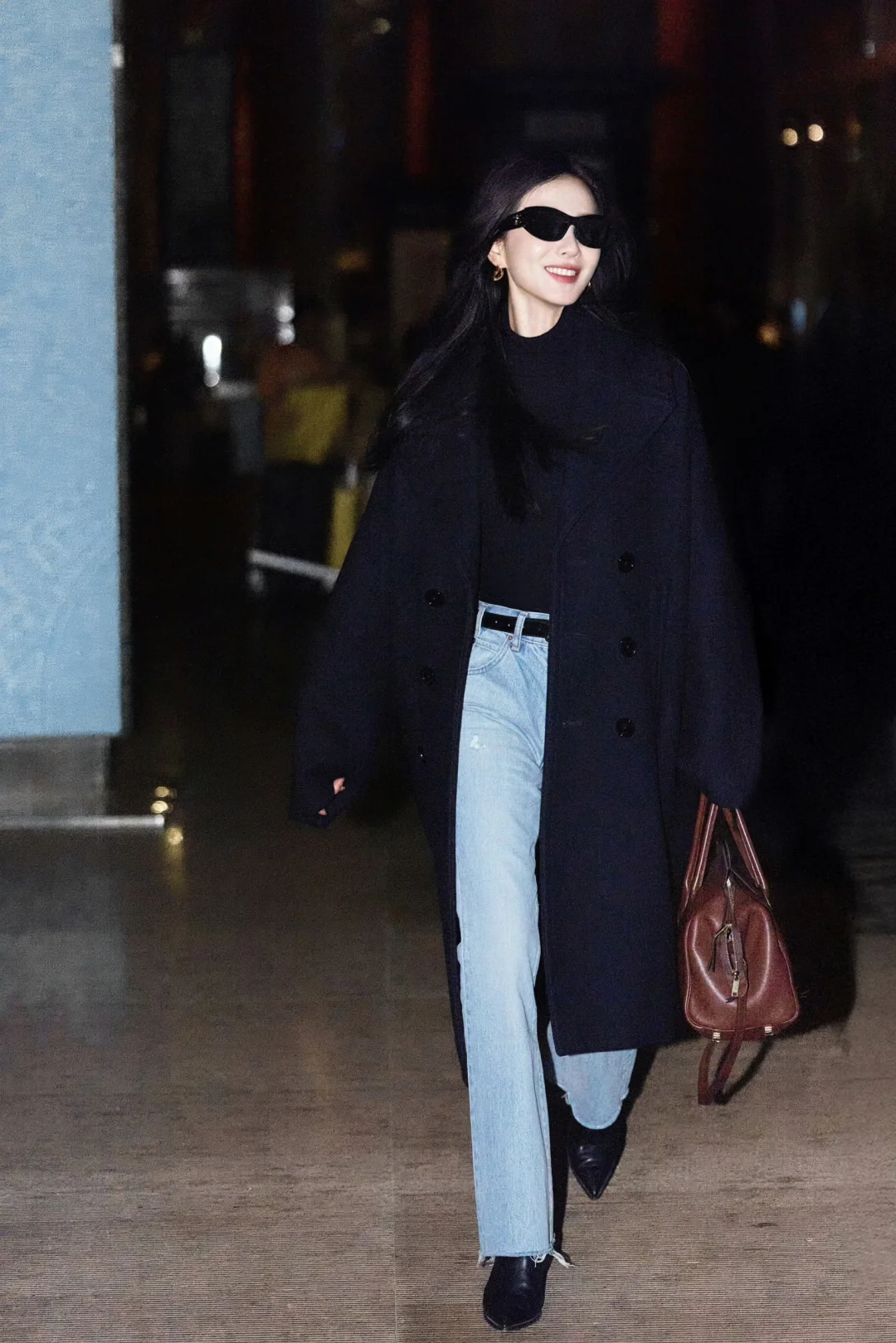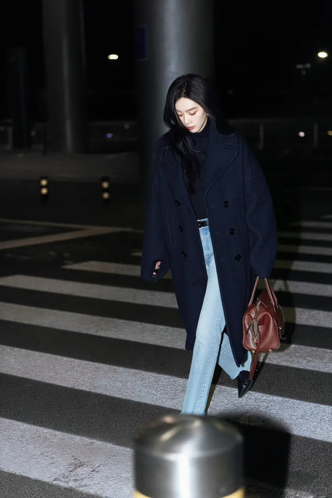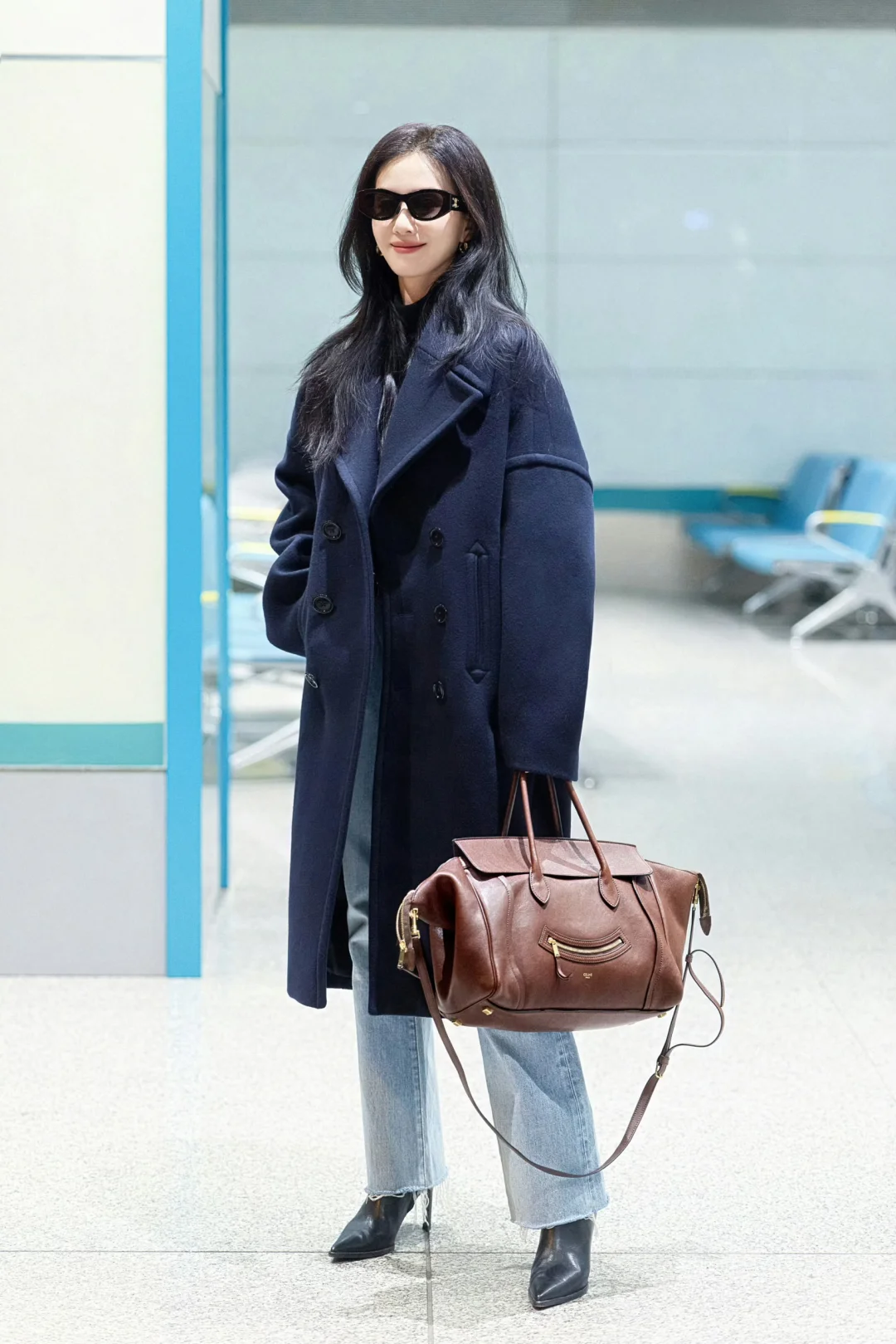 机场过斑马线这几步,完全就走成了自己的秀场T台。