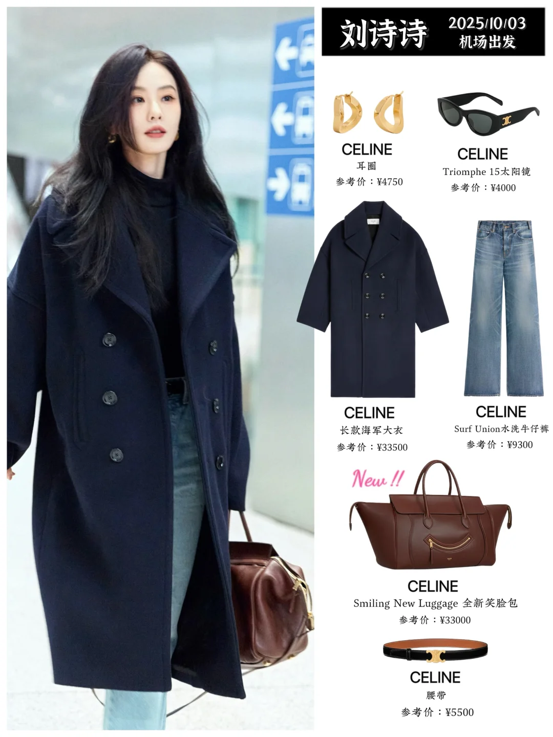 刘诗诗拎着全新笑脸包启程前往巴黎时装周,受邀出席 CELINE 2026 夏季大秀。