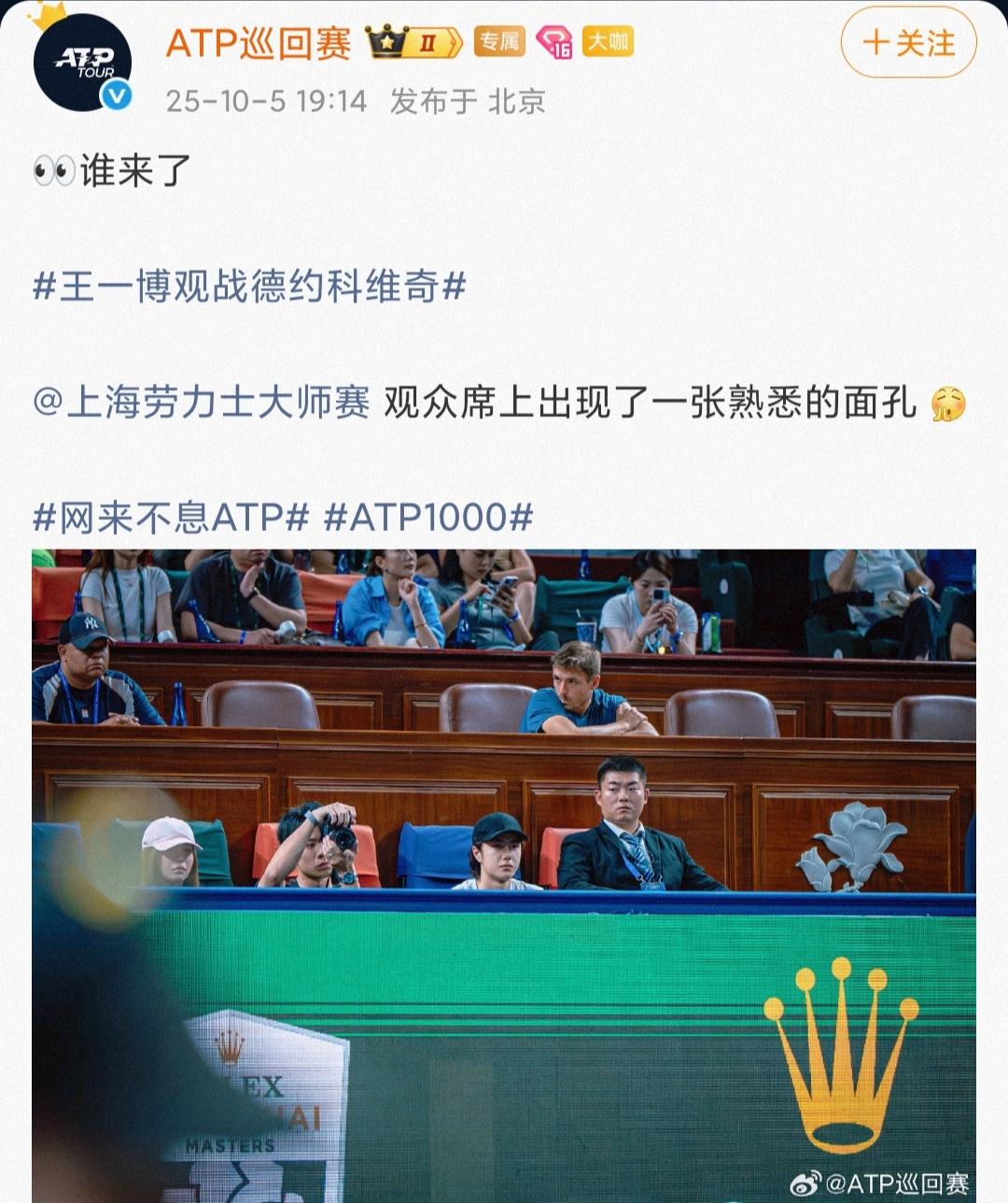 哈哈哈,被镜头捕捉到的王一博,“被迫”跟全场打了个招呼[捂脸]。 备战上海8小时耐力赛的王一博,被发现居然去了上海劳力士大师赛,现场观看德约科维奇比赛! 去年两人在LACOSTE长城活动中相聚,两人不但在活动中亲切合影,还一起打了网球🎾。 王一博真的是一头精力旺盛活力满满的小狮子,总是有着用不完的精力和各种真挚热爱[赞]。 王一博观战德约科维奇