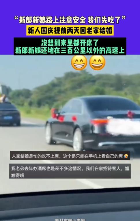 “人算不如天算!”江西,一对新人为了赶回老家结婚,提前2天上路,万万没想到,家里都开席了,新郎新娘还堵在300km外的高速上,家里人说,第一次结婚没经验,给新郎新娘打了声招呼:路上注意安全,我们先吃了!网友:没事,下次结婚就有经验了! 据河南广播电视台民生频道10月3日报道,事情发生在国庆期间,一对新人为了赶回老家举办婚礼,特意提前了两天时间出发。 他们预料到了节假日出行的高峰,以为两天的时间足够应对路上的拥堵,然而,现实远比他们想象的要严峻。 出发后,他们所行驶的高速公路很快就陷入了长时间的拥堵,车辆走走停停,时速有时甚至降到了个位数。 起初,他们还保持着相对乐观的心态,觉得这只是暂时的状况,但随着时间一分一秒地过去,导航地图上的红色路段丝毫没有缓解的迹象,反而愈发漫长。 到了婚礼的正日子,吉时已到,他们距离老家的婚宴现场还有三百多公里,新娘穿着洁白的婚纱坐在副驾驶,脸上早已没有了出发时的喜悦,取而代之的是难以掩饰的焦虑。 她频繁地解锁手机,查看时间,又点开亲戚们发来的现场视频,视频里,老家的院子热闹非凡。几十桌酒席已经备好,亲朋好友们陆续落座,桌上摆满了凉菜和瓜果。 孩子们在酒席之间穿梭嬉戏,大人们则举杯交谈,一片喜气洋洋,这本该是属于他们的幸福主场,可现在,他们却成了这场盛典最遥远的旁观者。 眼看着开席时间已过,家里的亲戚做出了一个无奈而实在的决定,他们通过视频电话告知这对新人,宾客们不能再等了,婚宴先行开始。 视频画面中,背景是推杯换盏的喧闹,亲人对着镜头说让他们路上注意安全,不用着急,家里的酒席会给他们留好饭菜。 新郎面对着手机屏幕,只能苦笑着点头答应,挂断电话后,车厢内陷入了短暂的沉默,他转头看着身旁满脸失落的妻子,将车内空调的温度调高了一些,然后伸出手,轻轻握住了她的手。 新娘的目光从车窗外望不到尽头的车流收回,看着丈夫疲惫却依然试图安慰自己的眼神,心中的委屈和焦躁慢慢平复了一些。 她没有说话,只是将头轻轻靠在了丈夫的肩膀上,这件事情被发到网上后,引起了大量网友的关注和讨论。 许多人对这对新人的遭遇表示同情,认为精心筹备的婚礼却以这种方式进行,实在是充满了遗憾。 有网友评论说,这种看着别人吃自己婚宴的感觉,恐怕一辈子都忘不了,也有不少人分享了自己类似的经历,表示节假日办婚礼确实存在太多不可控的因素,堵车几乎是必然会遇到的难题。 一位网友留言说,他结婚时也被堵在了路上,虽然没有这么夸张,但当时那种眼看吉时将近却动弹不得的焦虑感,至今记忆犹新。 对于新人来说,这场堵在路上的婚礼,无疑是一次深刻的记忆,它没有完美的流程,没有准时的开场,甚至连主角都缺席了。 但在这场意外的考验中,他们没有相互指责,没有争吵抱怨,而是在拥堵的车流中相互依偎,彼此安慰。 比起一场按时举行的盛大仪式,这种在困境中相互扶持的时刻,或许更能体现婚姻的本质,生活本就充满了各种无法预料的变数,就像这条无法预测通行时间的高速公路。 未来的道路还很长,会遇到什么样的困难谁也说不准,这场特殊的婚礼,虽然留下了遗憾,但也让他们提前上了一堂关于婚姻的课程:当计划被意外打乱时,最重要的不是追究原因或沉溺于懊恼,而是身边的人能否给你一个坚定的眼神,一个温暖的依靠。 不知道各位朋友,对于这场主角缺席的婚礼,你们有什么想说的呢? 信源:河南广播电视台民生频道2025-10-3——江西,“新郎新娘路上注意安全 我们先吃了”,新人国庆提前两天回老家结婚,没想到家里都开席了新郎新娘还堵在三百公里以外的高速上 来源 @表嫂