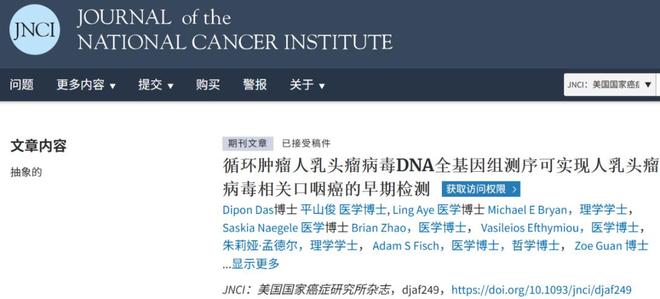 HPV-DeepSeek是什么?乍一看,你可能觉得这是不是和中国的DeepSeek公司有什么关系?事实上,这是一群科学家于近期打造的一款液体活检检测方法,该方法可以在无症状个体出现症状的10年前就能检测出人乳头瘤病毒(HPV,HumanPapillomavirus)相关的口咽癌,日前相关论文发表于《美国国家癌症研究所期刊》。