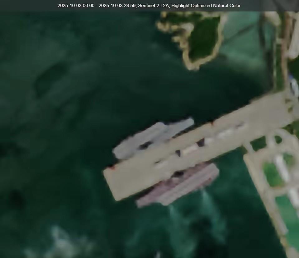 这应该是迄今为止公开最清晰的,老二和老三同框的卫星图(图1),由可恶戴胜的商业小遥感所拍;老美商业小遥感拍的那一张要更早一些(图2),当然现在都已不在了;最后的是,没有对比就没有伤害,欧空那10m分辨率的哨兵2,拍出来的效果就是个渣(图3)