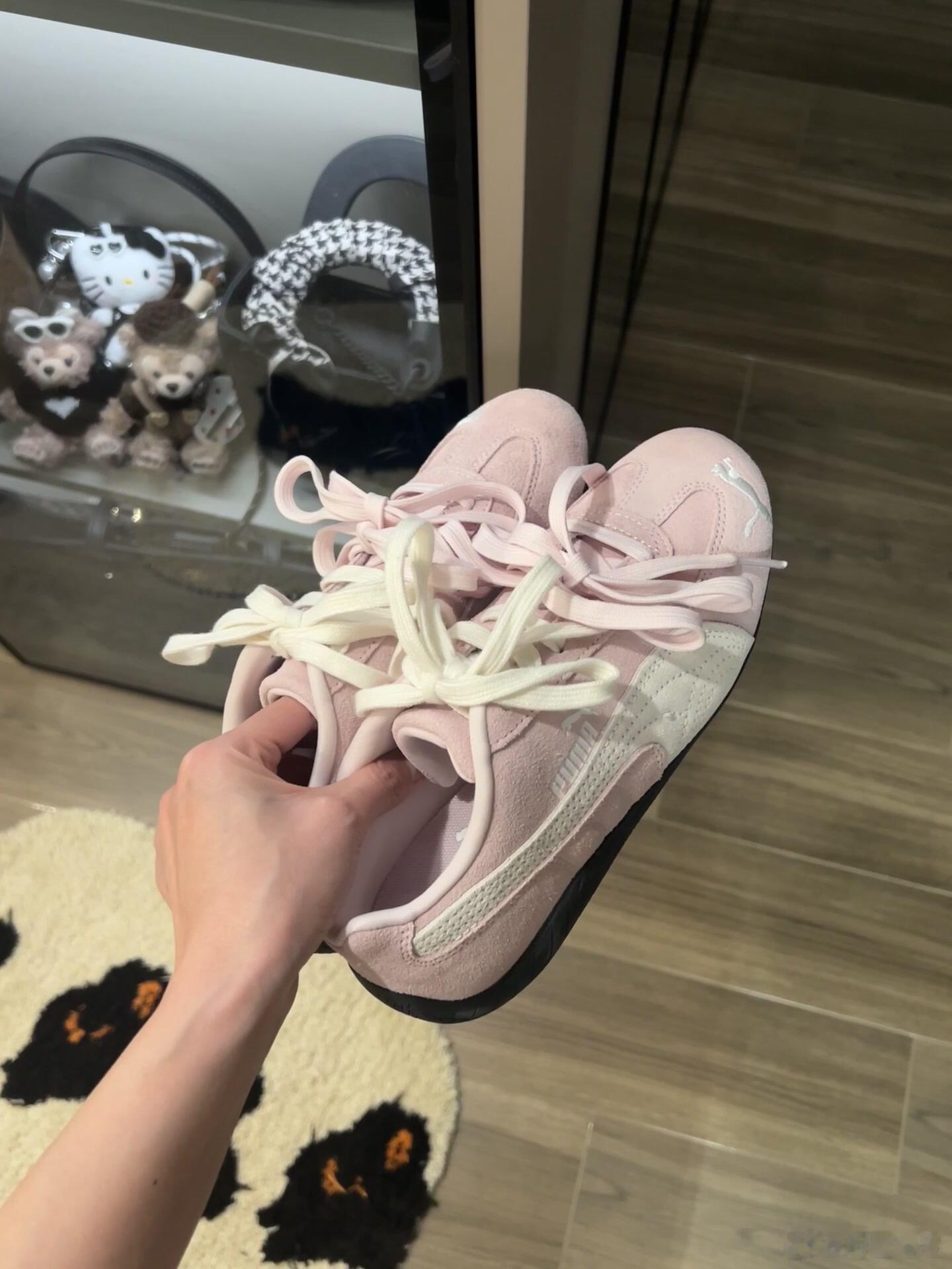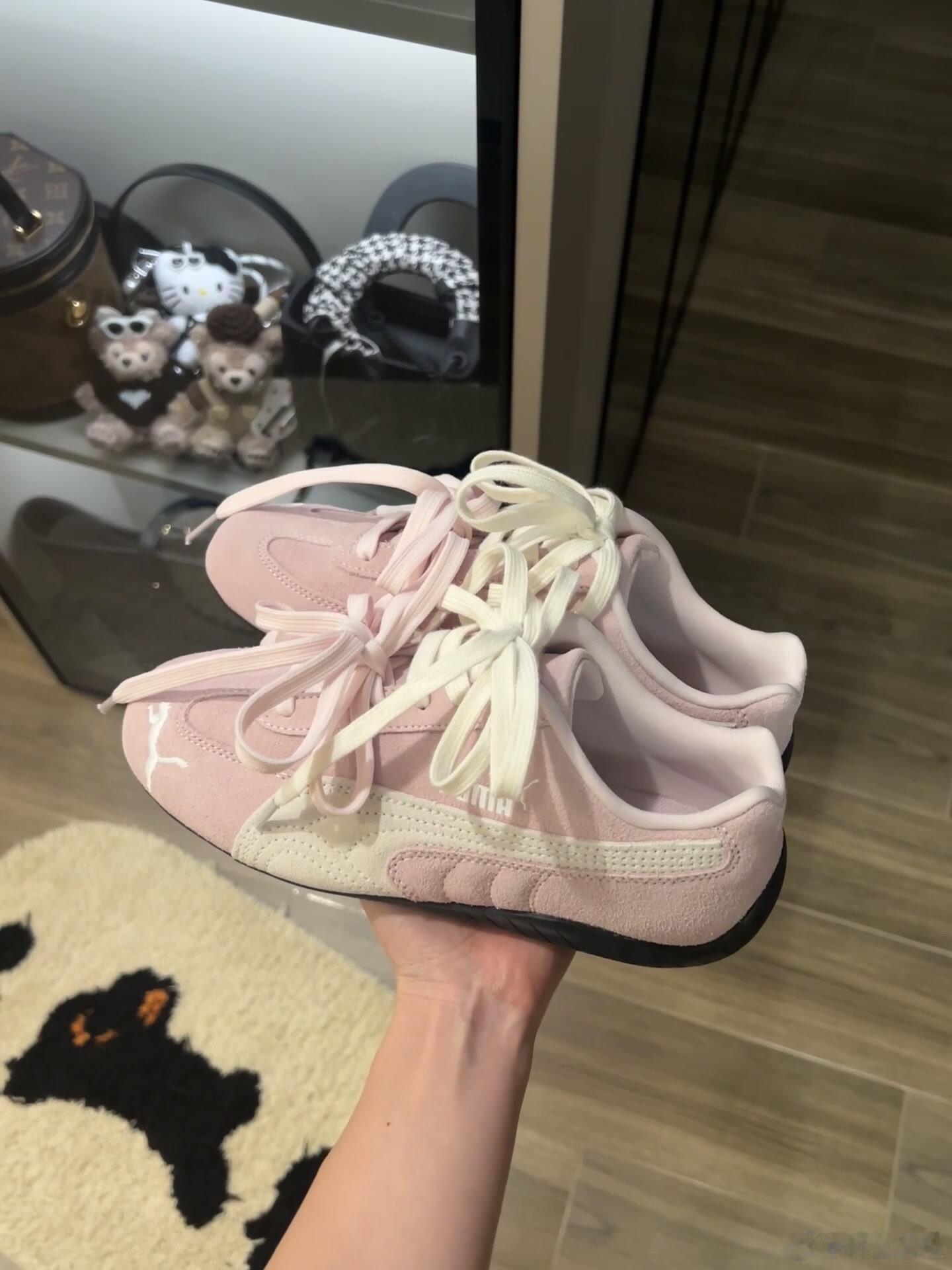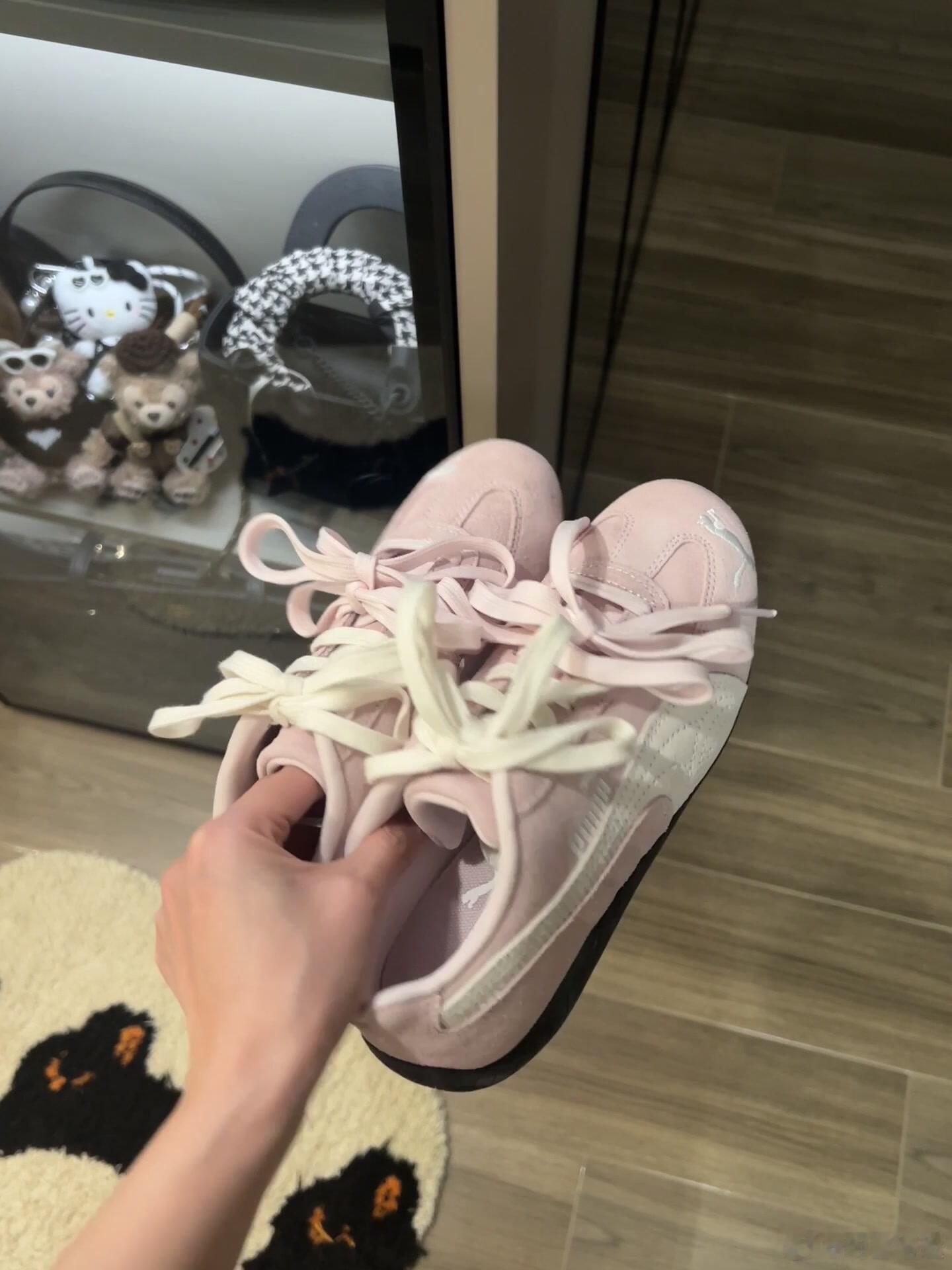 这双粉色PUMA休闲鞋以其清新柔美的色调和精致细节,展现出活力与时尚感并存的少女气息。鞋面采用质感细腻的绒面革材质,搭配米白色宽松系带的鞋带设计,增添了几分随性慵懒的风格。侧身饰有鲜明的白色PUMA品牌标识与刺绣美洲狮图案,凸显品牌辨识度。黑色厚底橡胶鞋底不仅实用耐磨,也为整体柔和的配色注入一丝酷感。它作为年轻化时尚单品的定位。整体设计简约而不失个性,既适合日常休闲穿搭,也能轻松融入活泼可爱的造型风格,是一款兼具颜值与舒适度的运动休闲鞋款。时尚鞋履SOTD鞋控的日常