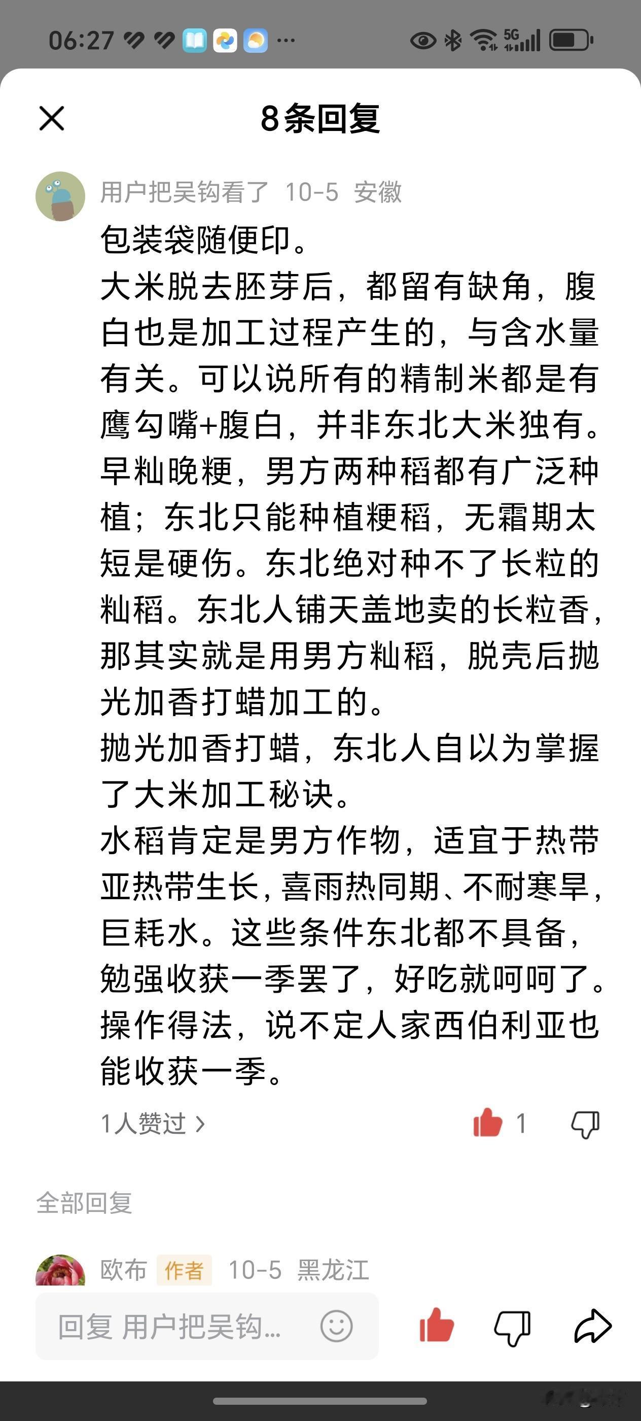 “东北绝对种不了长粒香,都是用南方籼稻抛光加香打蜡加工的,只能种植一季圆粒的粳稻,别犟了! 也别吹嘘种了二十年水稻,你这是在东北卖了二十年南方大米。” 这是一位安徽朋友在评论区说的话,他不仅质疑东北的稻谷品质,还非常肯定地说东北长粒米就是用南方水稻经过加工制造出来的。搞笑的是这位朋友从来没来过东北,也没吃过东北大米。 对于曾经的稻农,我不止种过吃过,也见证了东北大米从最初的普通种植,到如今的完全现代化规模化种植。 现在黑龙江地区不仅能种植圆粒米,更能种长粒米,稻花香二号更是驰名中外。 东北大米口感好,Q弹有嚼劲,不回生。 我也在南方常住过,也吃过南方地产大米,说实话,南方大米口感没有东北大米好,反正无论走到哪里,我还是喜欢吃东北产的米,现在走到哪,也都能买到东北大米,可见东北大米的受欢迎程度。 这位安徽的朋友没来过东北,不相信东北能种出这么优质的大米也情有可原,我建议他到黑龙江来看看,看看大农业,看看稻花香。秋天的北大荒,那真是稻香飘荡,我们的米不用打蜡抛光,也不用加什么增香剂,都是原汁原味原生态的,只是简单的加工就可以了。因为外观可以造假,但是口感造不了假。 没吃过东北大米的朋友建议您尝一尝,吃过了就知道我所言非虚了。黑土地长粒香米 长粒香大米 东北长粒香米 生态长粒香大米