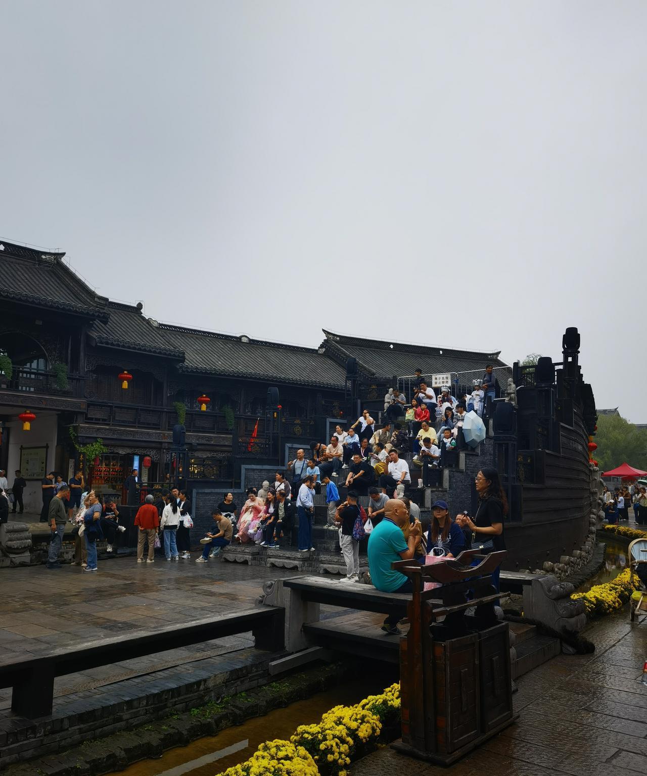 #国庆节去哪玩?# 10月4日,我们自驾来到台儿庄古城。这是个5A级景区。对60以上的老年人免费。对持导游证的人免费,这是个意外惊喜,我的导游证在台儿庄古城免了门票。 我们是从南门进入古城的。迎面是一个船型的剧场,有演员在唱戏,听戏的年轻人坐满看台,很有意思的体验。 跟随熙熙攘攘的人流,走街串巷,到处是小桥流水,移步换景,堪比来到江南水乡。复兴广场上有舞蹈表演,演员跳的很认真,长得也很漂亮。 古城里有台儿庄大战遗址公园。讲解员认真讲解着抗日战争中台儿庄大战的历史细节,小学生表情凝重的在认真听。中国人要世世代代牢记那些曾经侵略中国,杀害过中国人的人,血海深仇,永志不忘。新中国对国民党政府的抗日功绩是客观肯定的。 台儿庄古城有个很有意思的安排,这里面有菩提寺、清真寺、基督教堂、关帝庙、天齐庙、月老庙、观音堂、天后宫等宗教寺庙场所。各路神仙和谐相处,各司其职,共同保佑我中华民族,啥难题都能找到神仙帮忙,这在世界上也是奇迹。 台儿庄古城人气很旺,四个城门都络绎不绝的人流进来。各种美食、店铺、客栈,一应俱全。小孩、美女们穿着汉服从身边走过,让人恍然入梦,像是穿越到了古代。 台儿庄古城景观设计精巧,小桥流水移步换景,神似周庄、乌镇,但是比他们大气,街道宽敞平整厚重,几乎都是石材铺道。建筑亭台楼阁雕梁画栋,处处精致不应付。路面干净,处处有人在打扫。商铺明码标价、童叟无欺。还有超大的南门停车场。 台儿庄古城,真是一个值得去的北方水城好景点!#旅游台儿庄古城# #台儿庄旅游# #台儿庄古城#