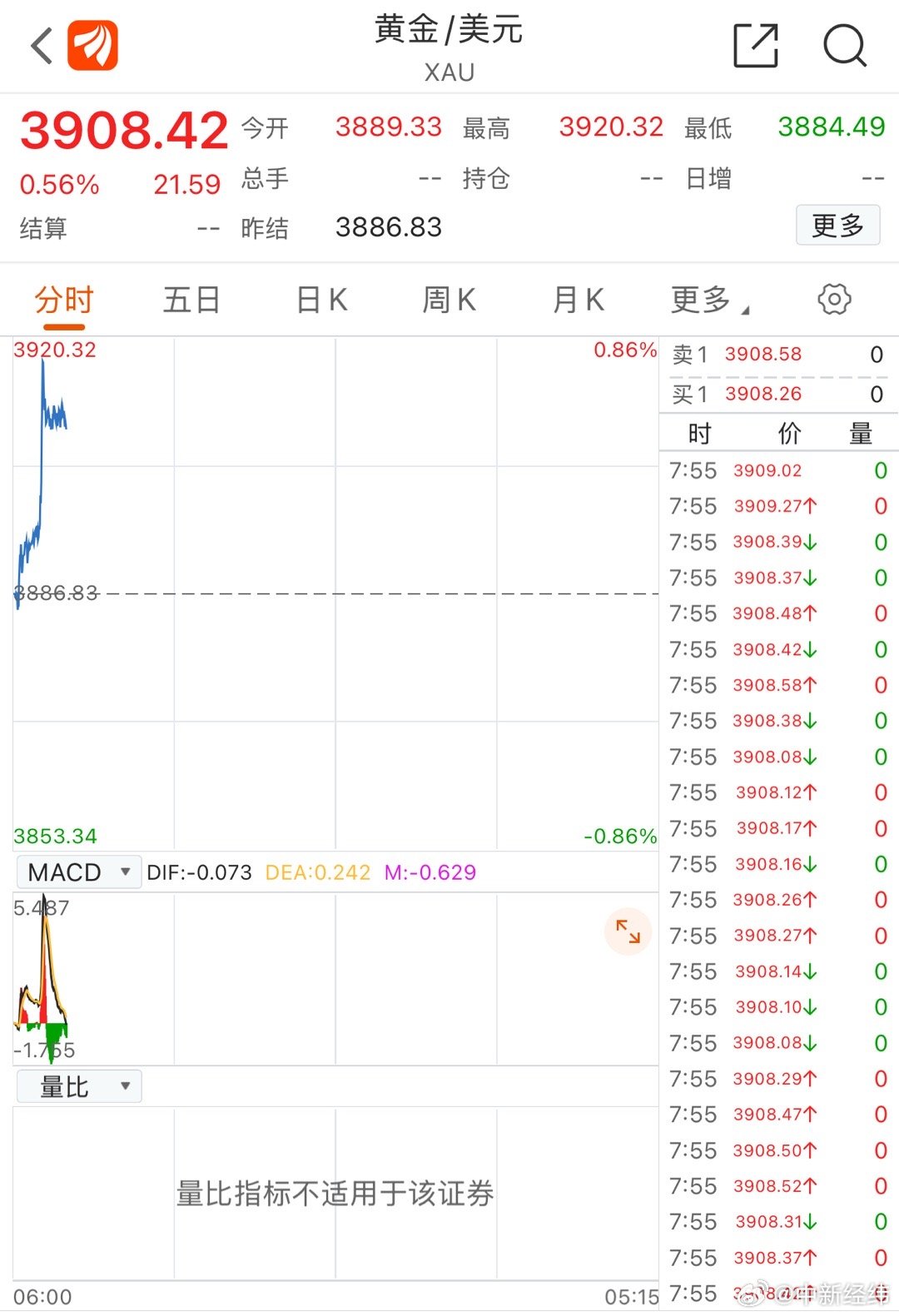 [#黄金突破3900美元了#]现货黄金本周开局维持强势,上破3900美元/盎司关口,日内涨幅0.35%,再创历史新高。距离首次突破3800美元关口仅不到10天。