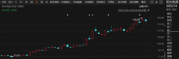 近日,阳光电源在二级市场走势相当抢眼,公司股价持续攀高,9月份累计涨幅超62%,总市值突破3300亿元。