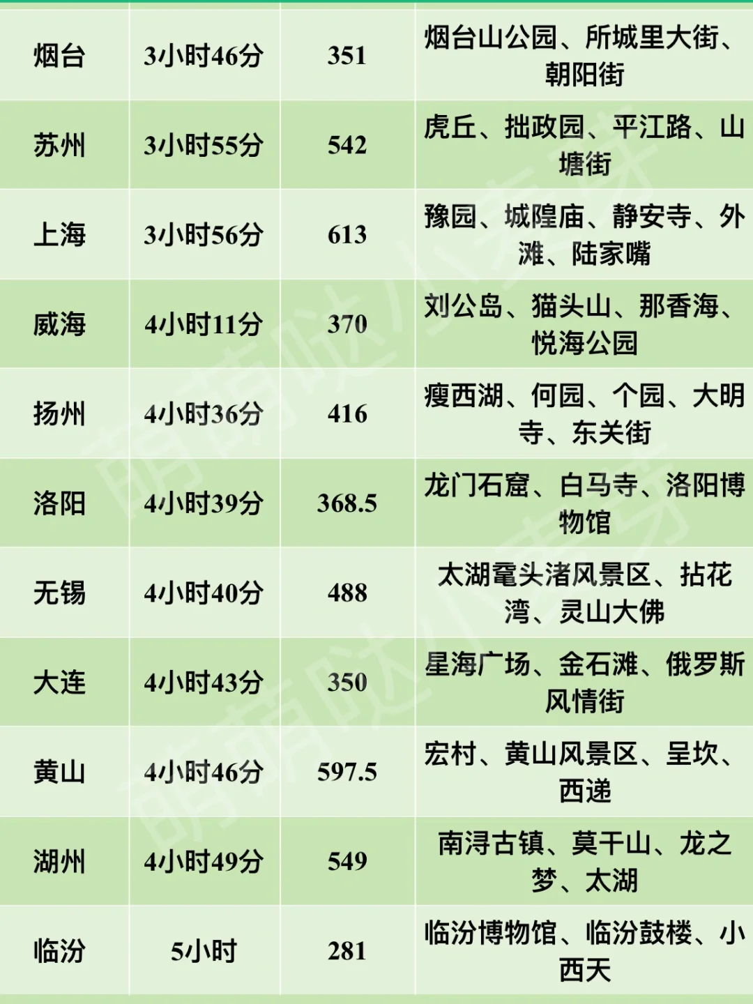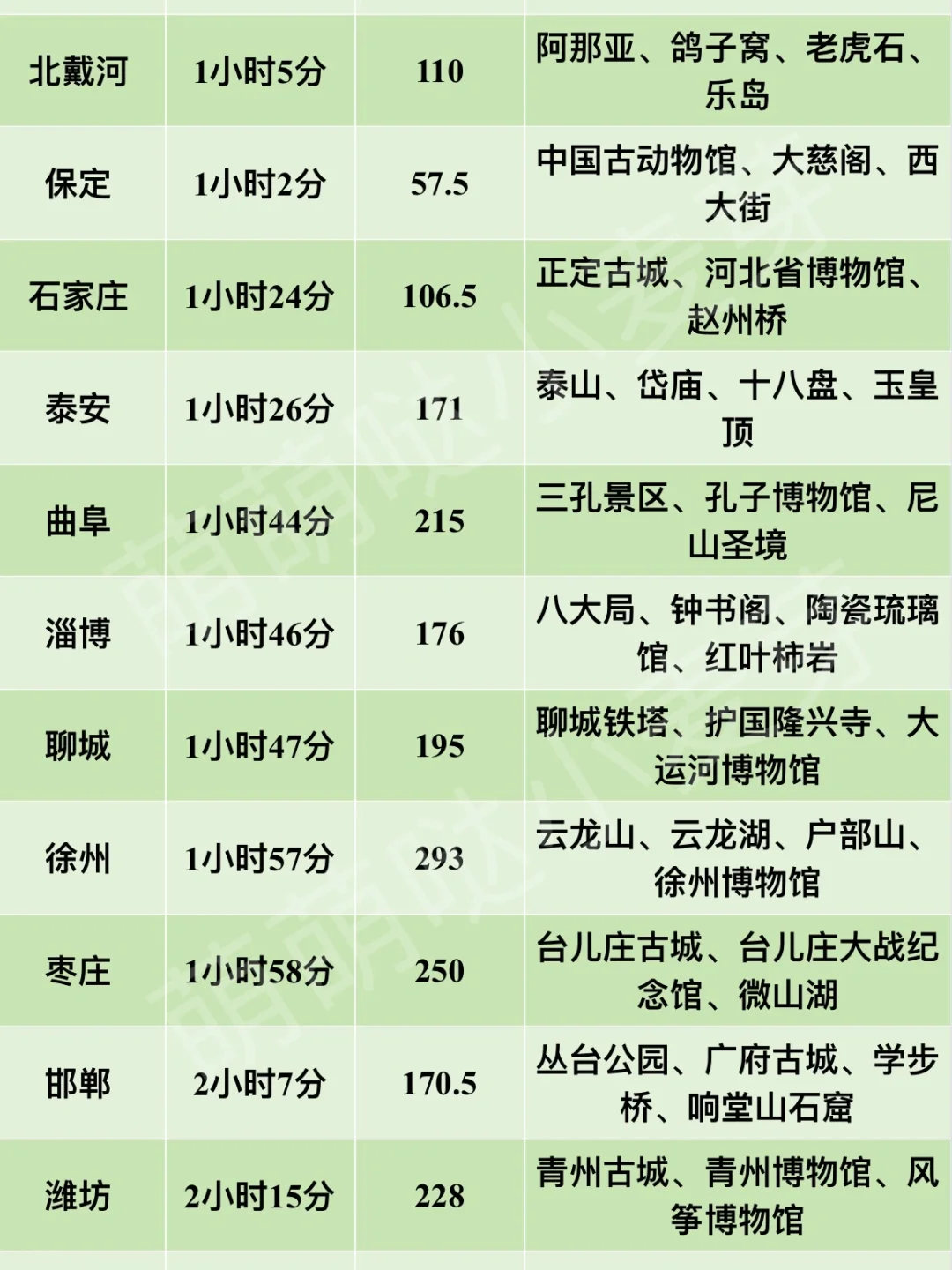 之前就给大家总结过高铁出行计划 但是行程票价都有很多的变化 这次又熬夜总结了4.0版本[得意R] 从天津出发0-5小时高铁出行大全 周末也能出去玩一圈 🌤️天气这么好 叫上你的好朋友or家人出发吧!