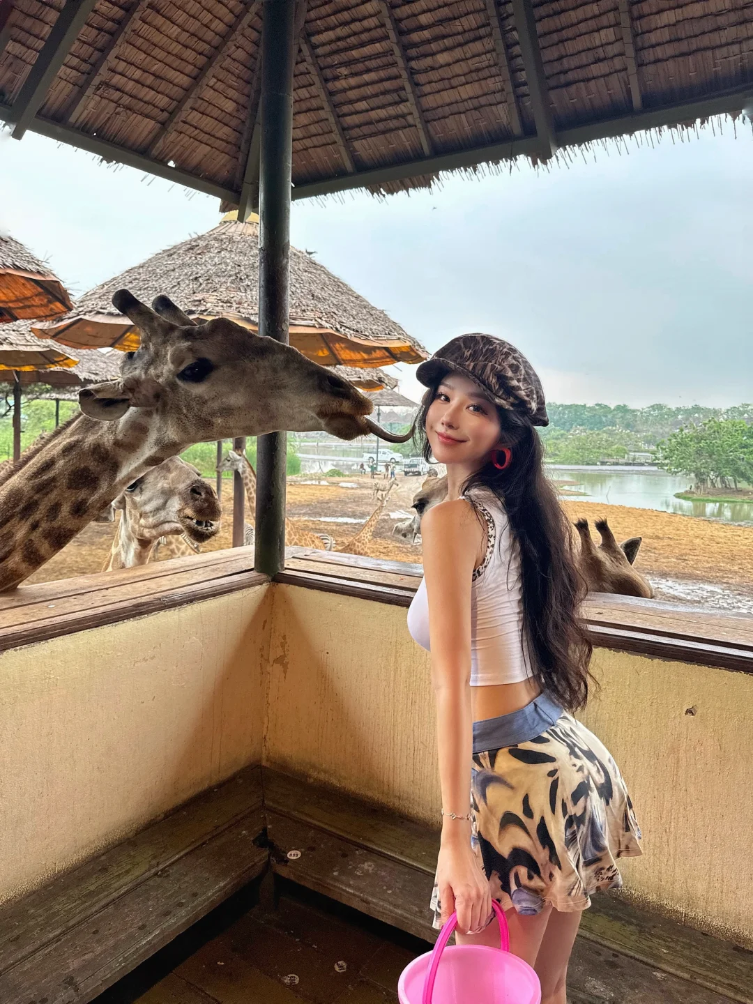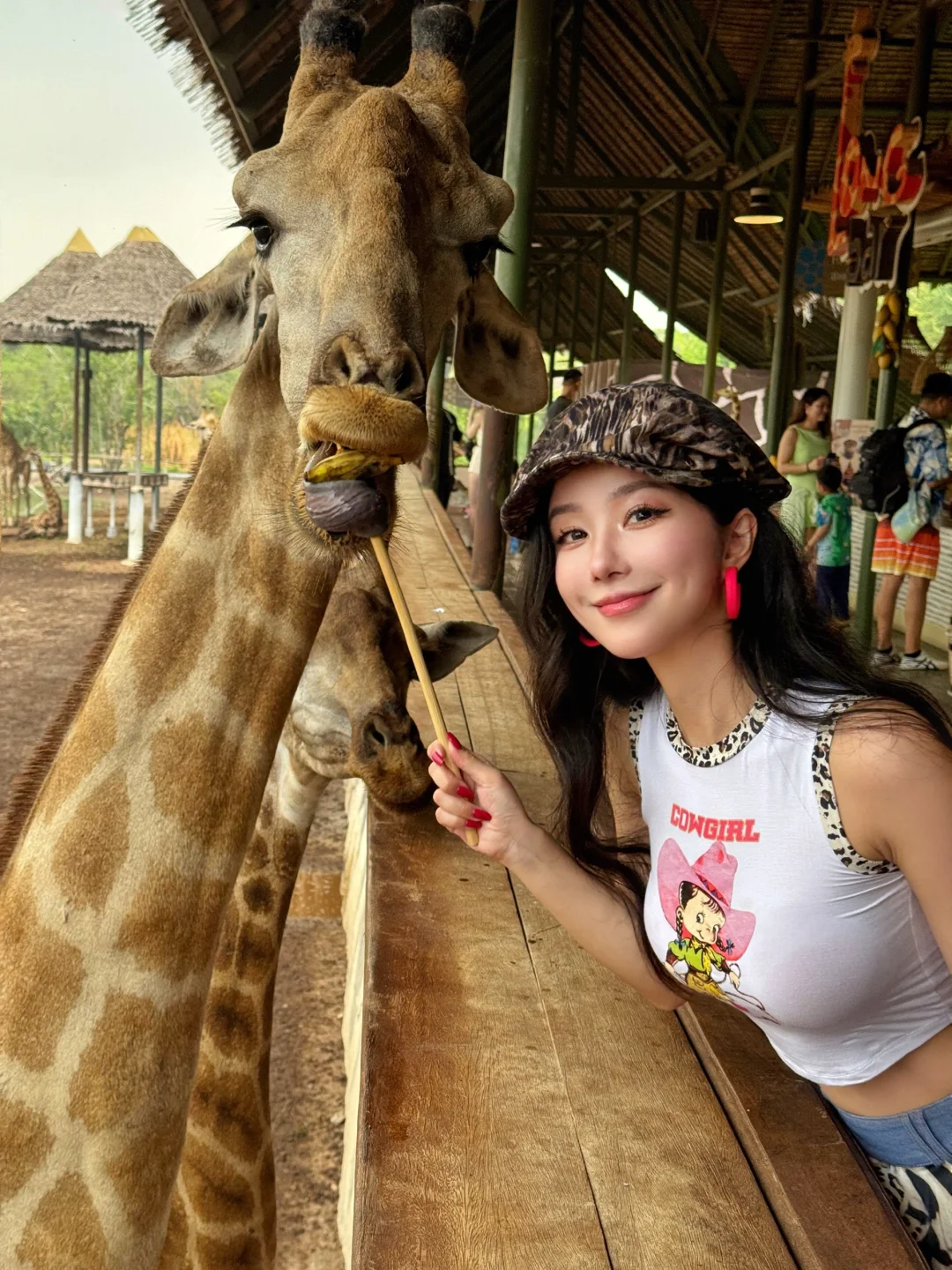 4️⃣长颈鹿—拍照免费不限时,买一桶胡萝卜可以喂很久,长颈鹿舌头很长别被舔到了