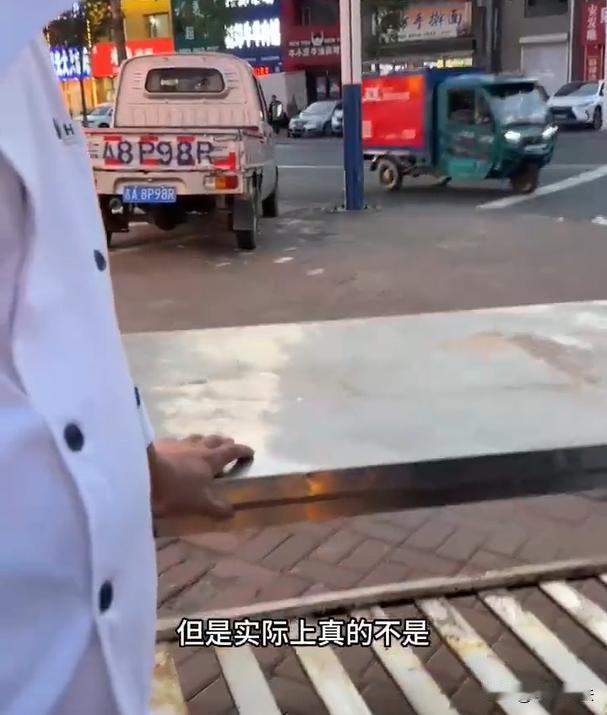 吉林,一名九旬老人,看到一家饭店门口有一个不锈钢的操作台,于是就把它倒过来,一步
