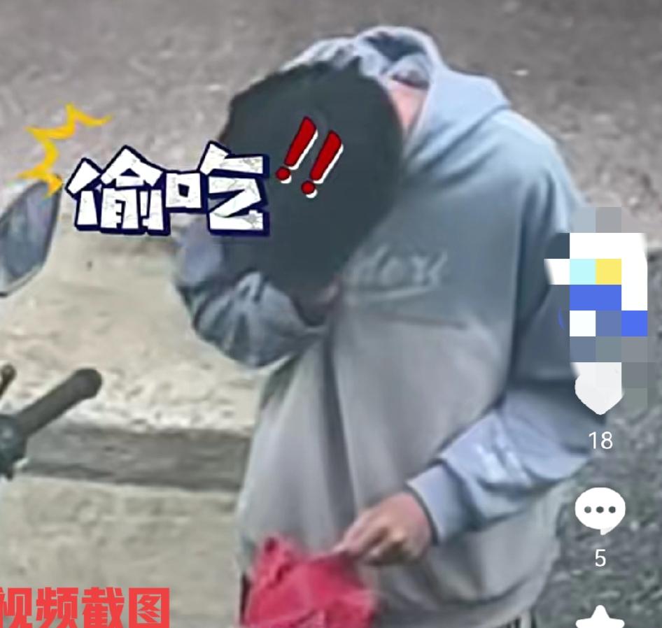 有一外卖骑手楼外偷吃顾客的外卖。 只是让骑手没有想到的事,这一幕被楼上住户“拍