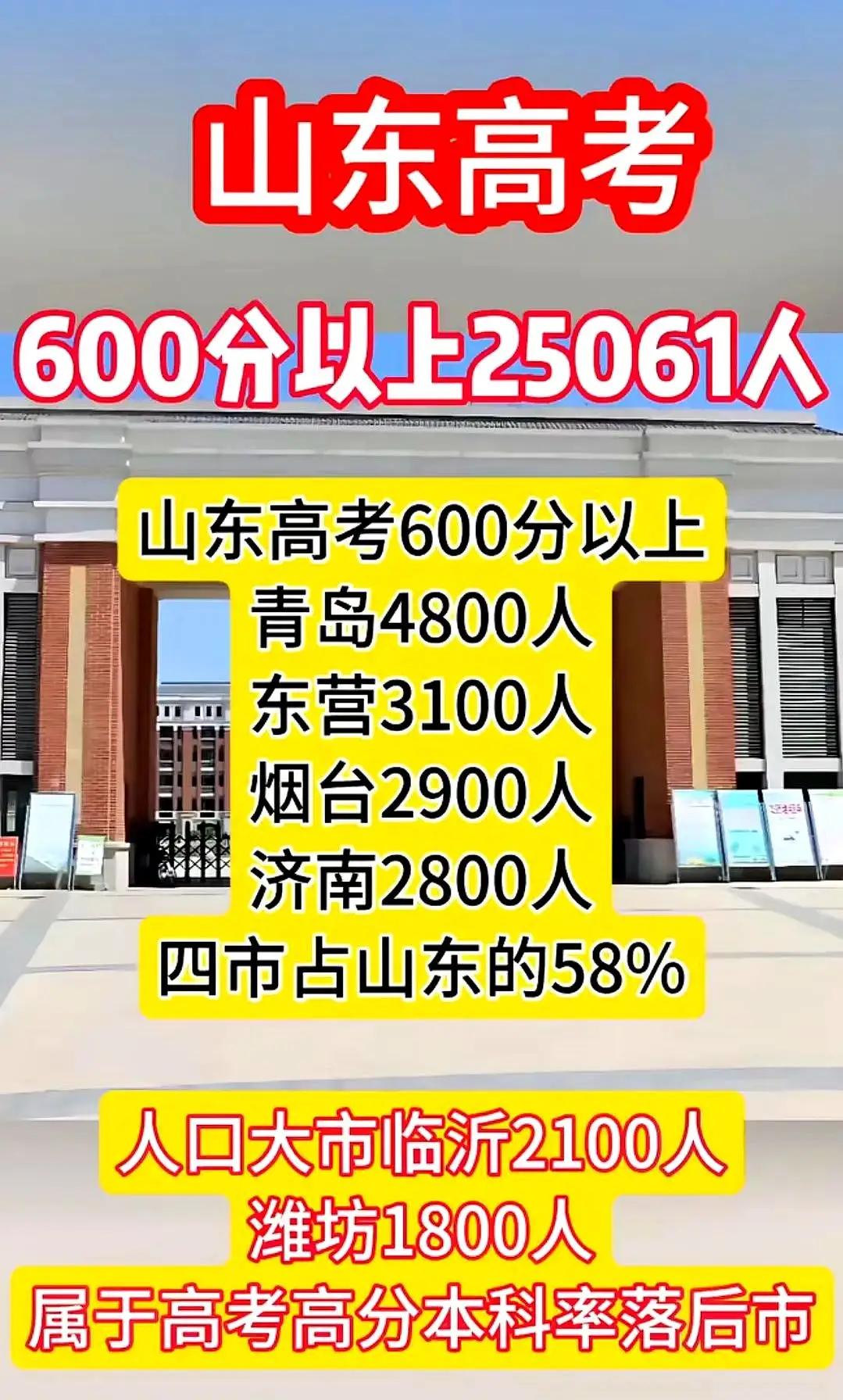 东营教育到底有多厉害?每五个东营考生就有一个过600分的,总数仅次于青岛。全省前三名,胜利一中就占了两个,青岛1个。这样看,出生在东营,就跑赢全省大多数同龄人。