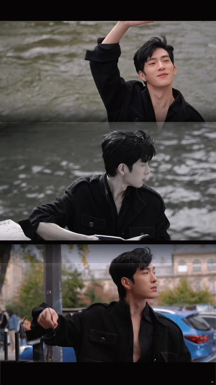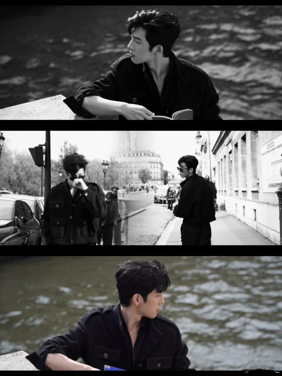 井柏然这领口开得我很满意塞纳河畔漫步,他深色西装领口随性敞开,光影落在脖颈间,