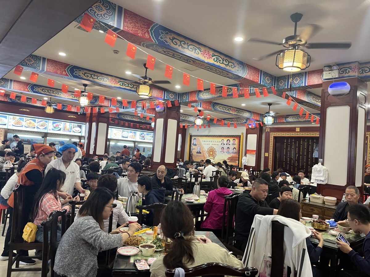 走访中记者了解到,这几天每天上午11点刚过,葛记焖饼、合记烩面等门店就已座无虚席,门口的等候区早早摆好了椅子、热水壶,甚至还放了儿童玩具和小零食。“从10月1日到现在,每天要接待3000-4000人。”葛记焖饼总经理任屹说,为了保证每一位客户的体验感,门店提前就备足了食材,“面粉、坛子肉都是平时几倍的库存,来的都是客,保证大家都能吃到”。
