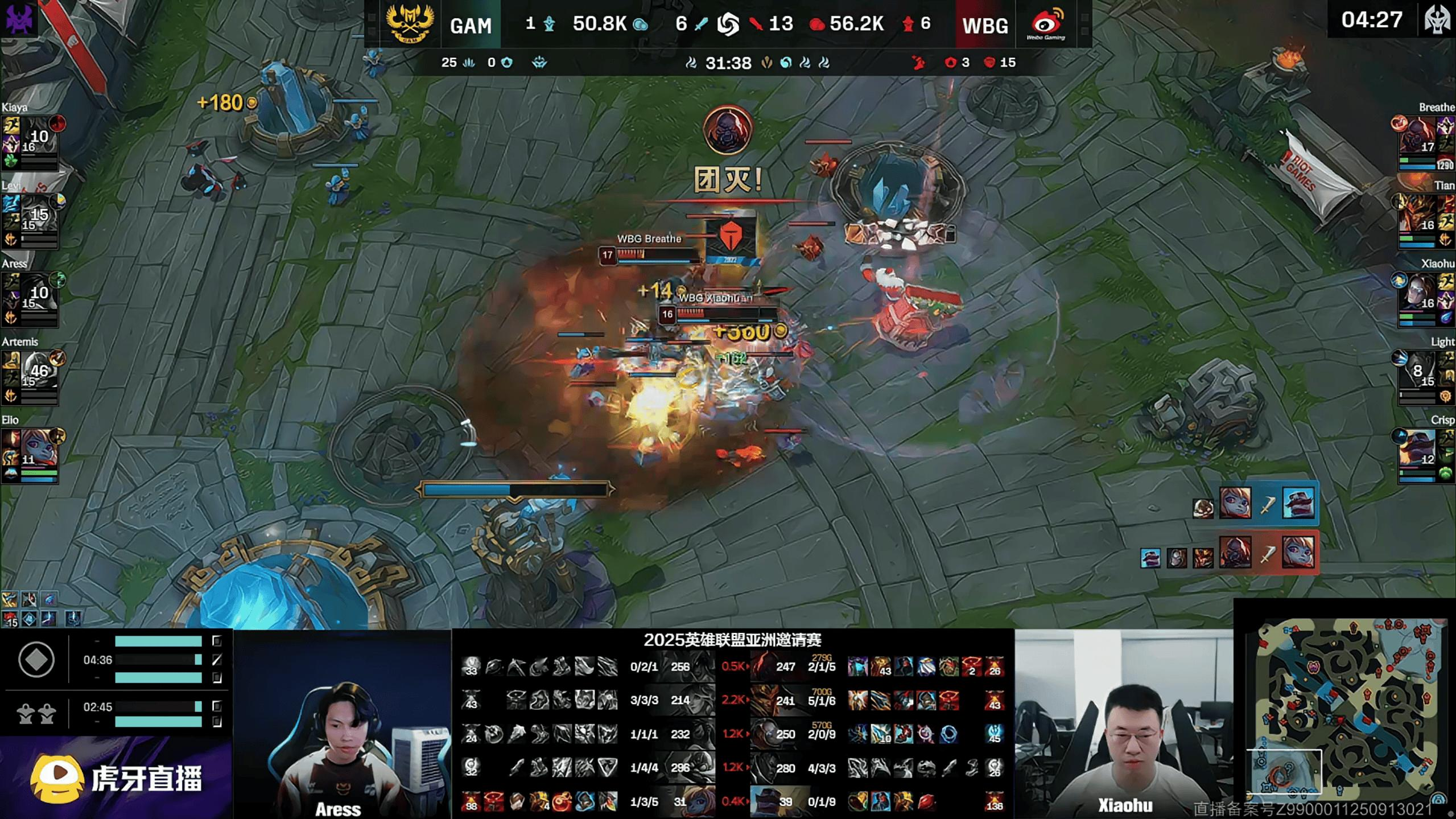 虎扑10月06日讯在WBG对阵GAM第一局最后阶段,Tian亮出2022-TES标