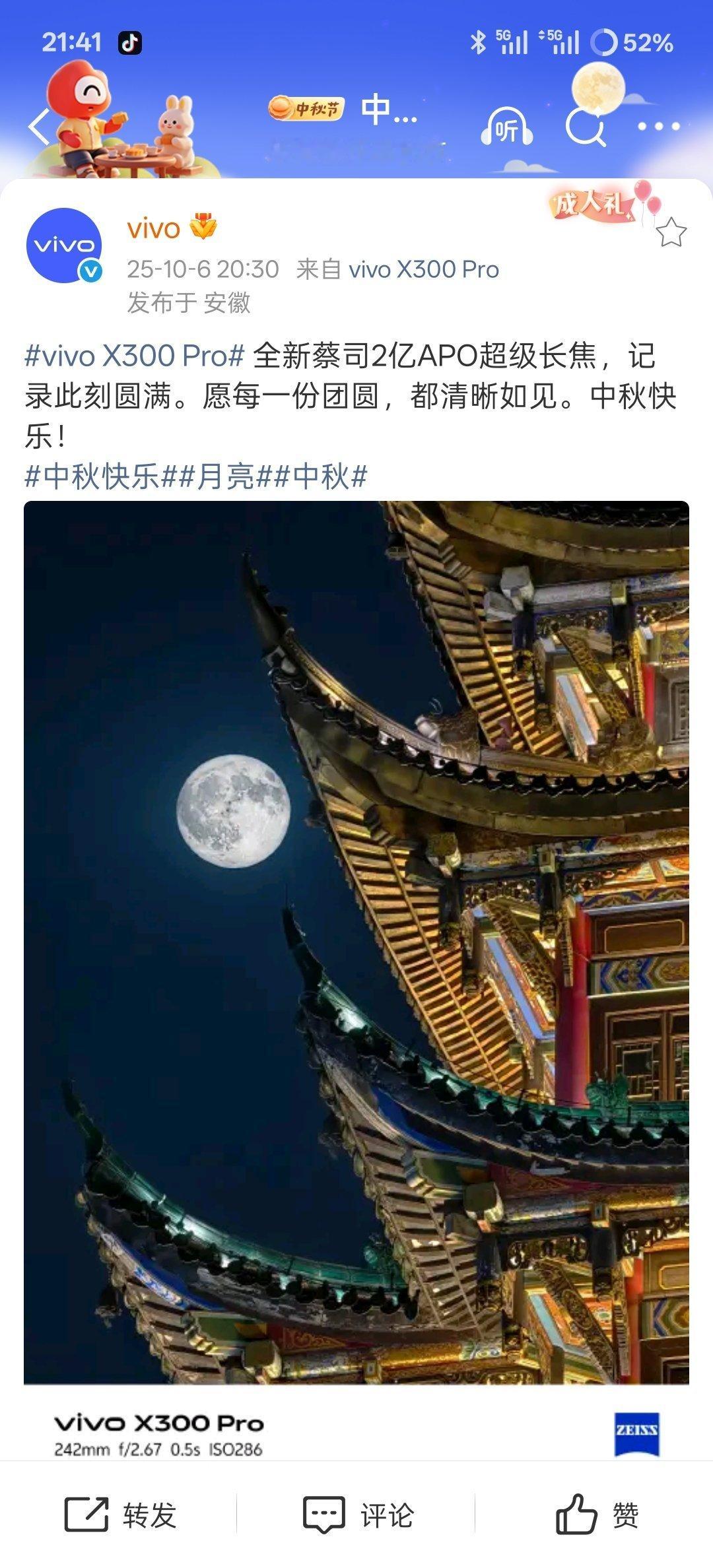 【灭霸长焦:vivo X300 Pro 手机全新蔡司 2 亿 APO 超级长焦中秋圆月样张公布】