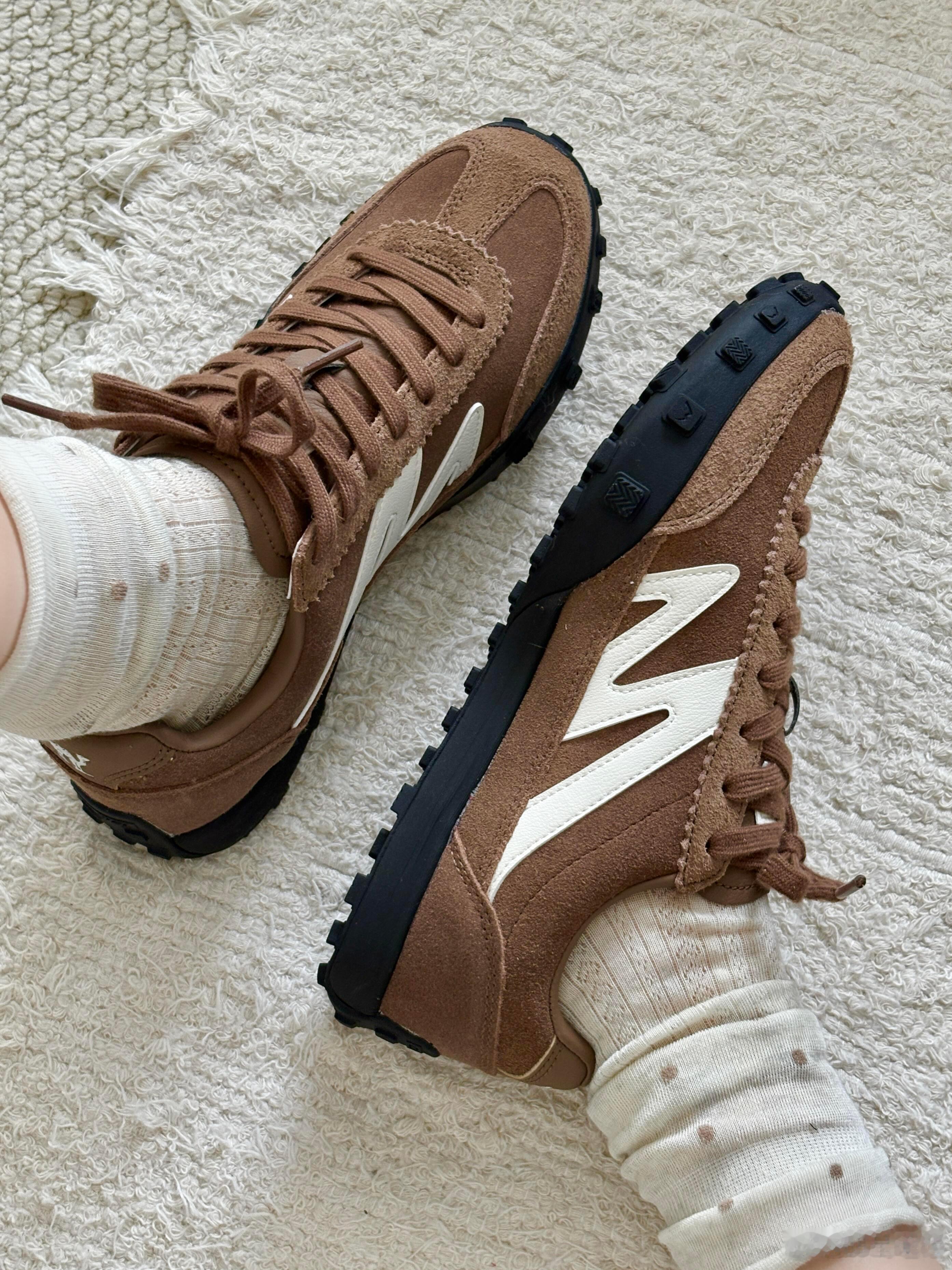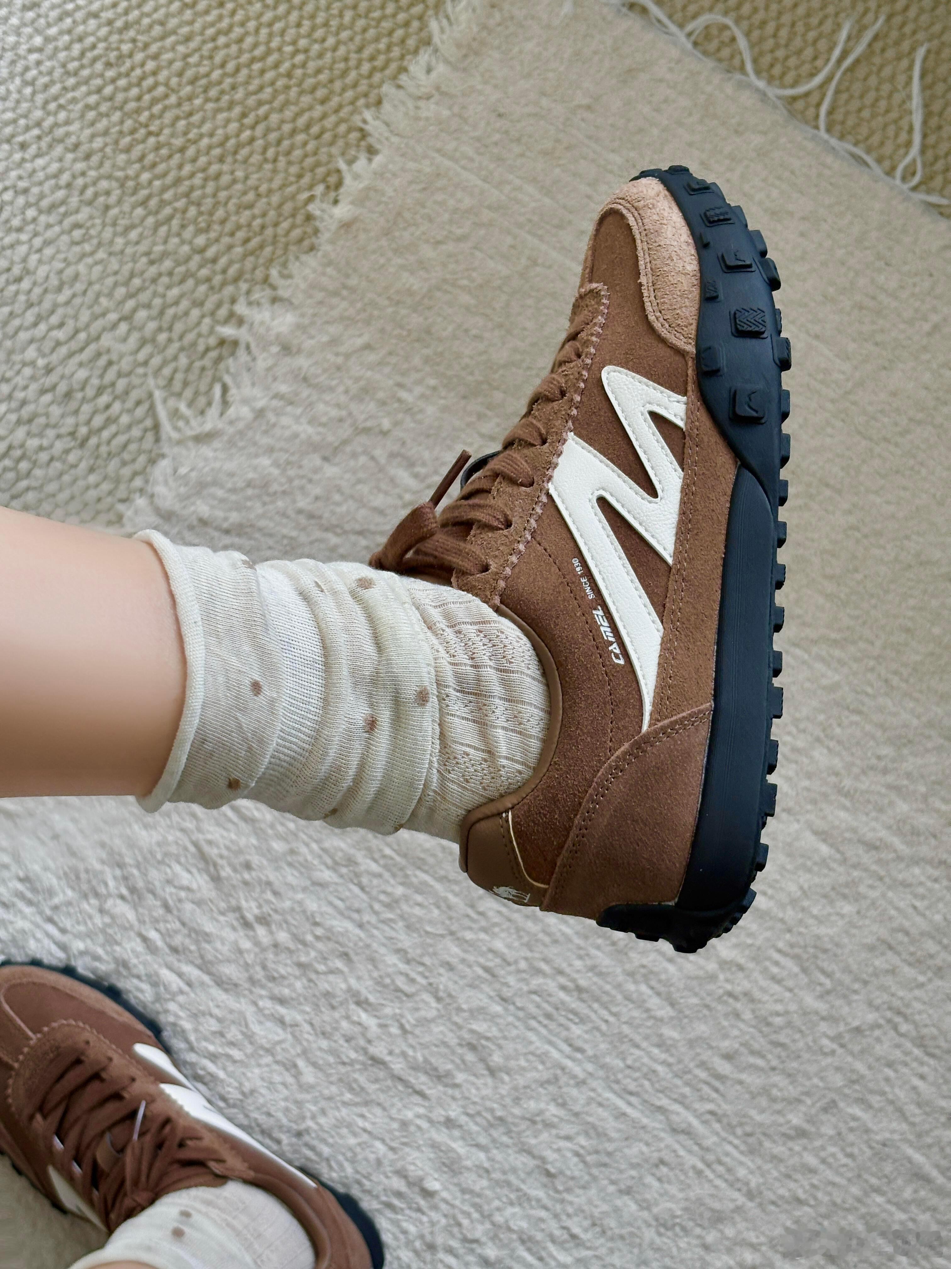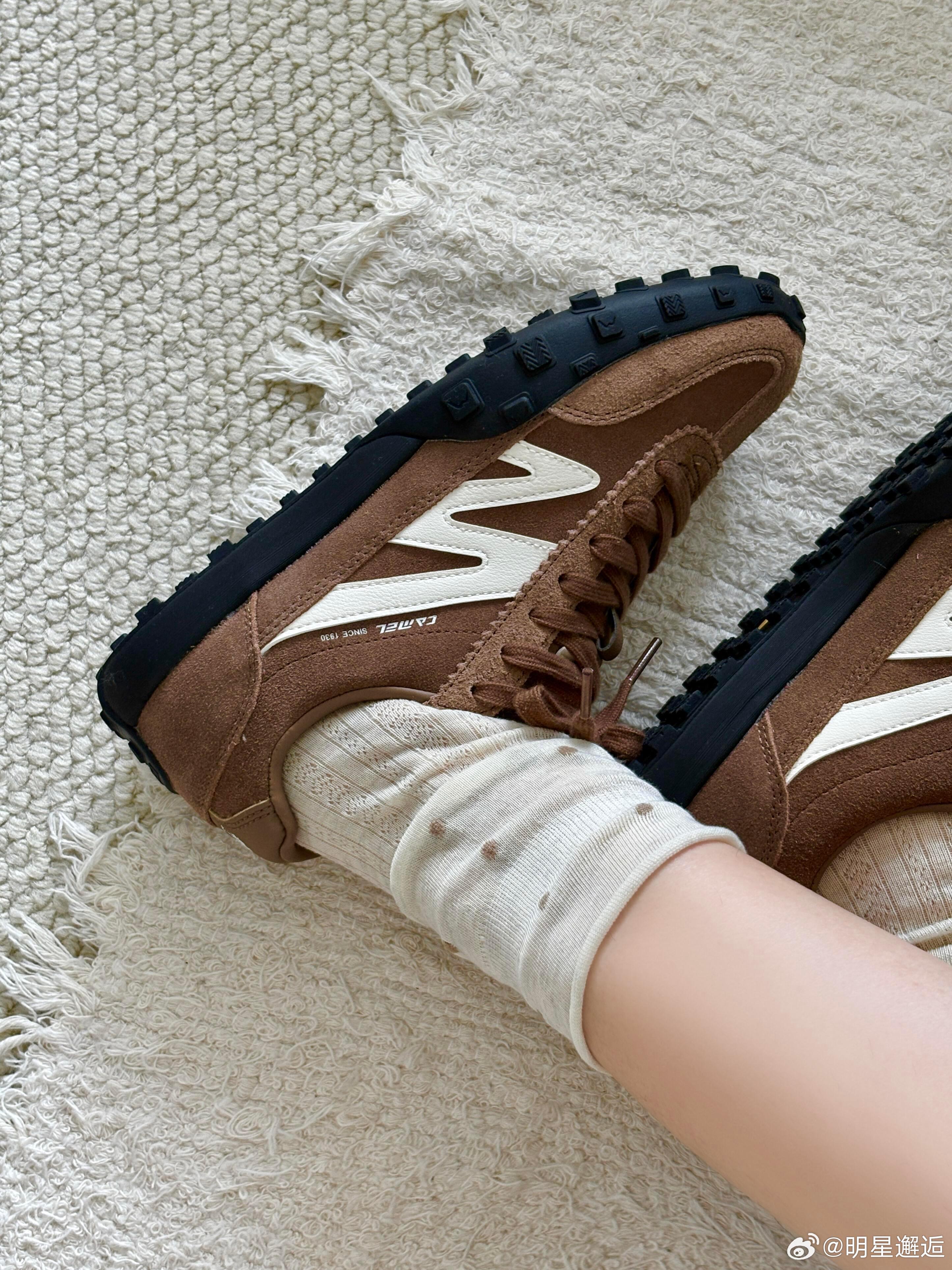这双鞋是一款设计精良的棕色休闲鞋,主打温暖舒适的秋冬风格。鞋面采用质感丰富的棕色绒面革,搭配醒目的白色侧边条纹与字母印花,瞬间提升了时尚感,简约而不简单。黑色橡胶鞋底纹路清晰,确保了日常穿着的耐磨性与抓地力。其经典的“CAMEL”驼色系,易于搭配,无论是休闲裤还是牛仔裤都能轻松驾驭,完美融合了质感、舒适与都市休闲格调。时尚鞋履SOTD鞋控的日常