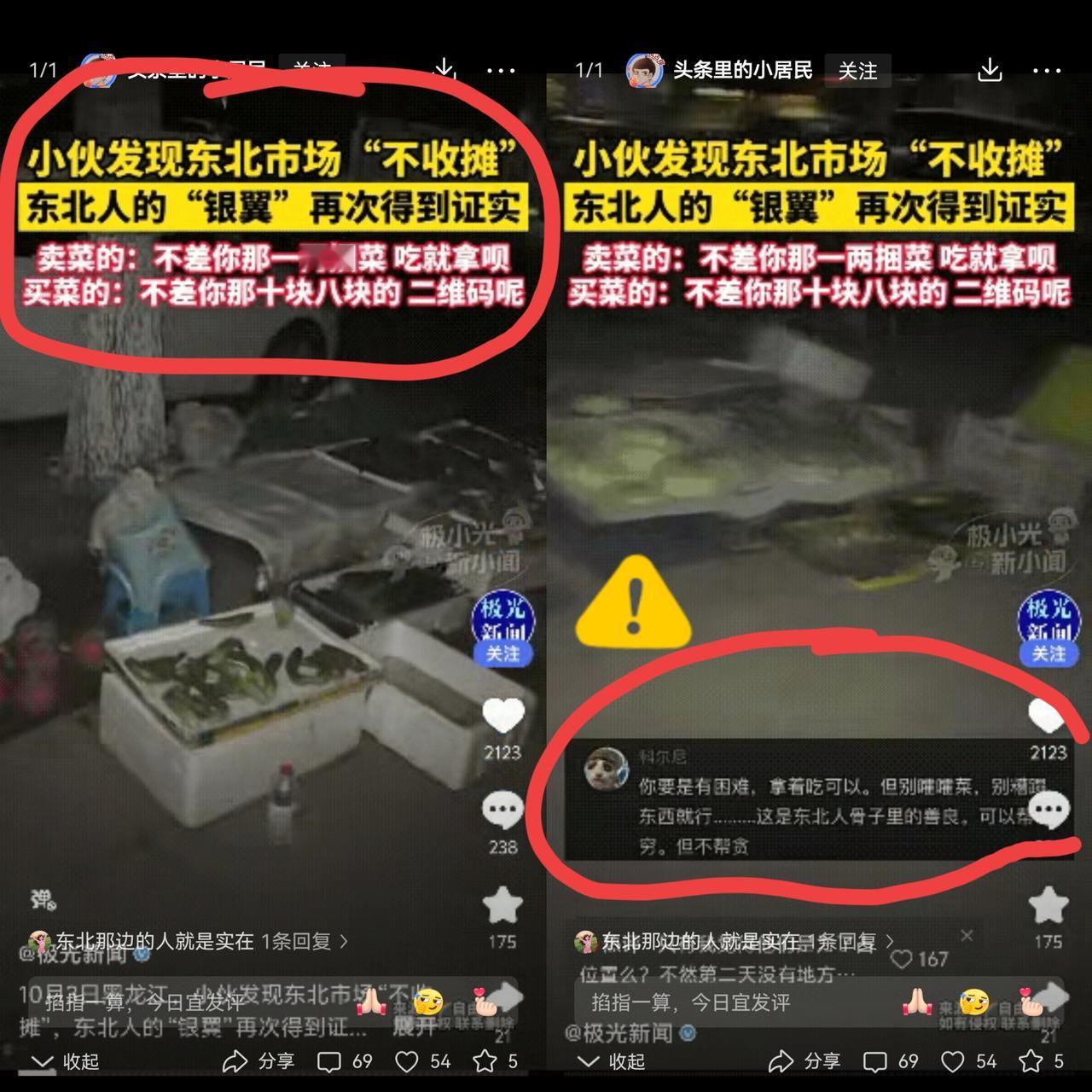 “太有意思了!” 黑龙江,一男子发现某菜市场各摊位晚上没人看守,菜却齐刷刷摆着,连个看守的都没有! 他忍不住吐槽:“家人们,这真是东北?菜就这么放着,不怕被偷?”底下评论瞬间炸了,有东北网友回得特实在:“真有困难拿点吃没事,但别糟蹋、别贪心,咱东北人认这个理儿。” 有人说这是占位置,也有人觉得该盖块布才真实,但更多人被戳中了——这不就是老辈说的“路不拾遗”吗?其实哪都有好人坏人,可东北这股子敞亮劲儿,确实打破了不少人的刻板印象。 你们那儿有这种“不设防”的烟火气吗?遇到这种摊位,你会忍不住多光顾吗?
