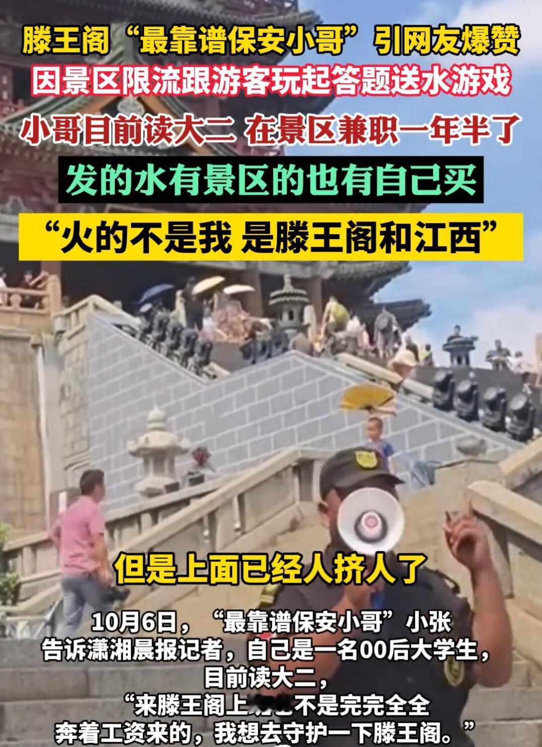 这个国庆节,南昌滕王阁有个保安小哥彻底火了! 当天景区人挤爆了,大太阳底下游客