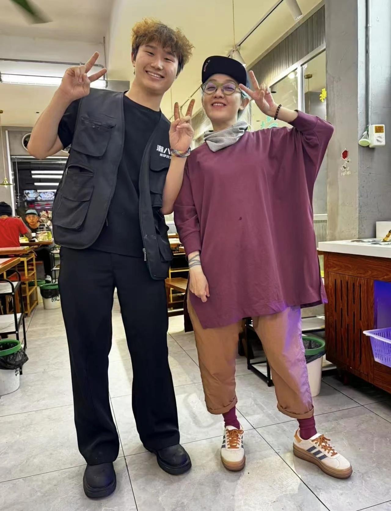 近日,有位安徽的老板娘晒出与范晓萱的合影,老板娘说她:“特别礼貌,平易近人”。