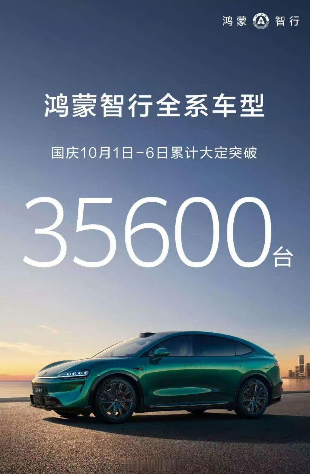 鸿蒙智行全系车型国庆 10 月 1 日-6 日累计大定突破 35600 台。
