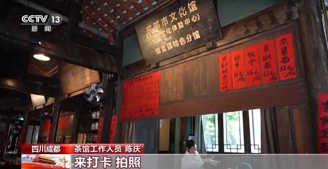 茶馆工作人员陈庆:吸引了很多年轻人和外地游客来打卡、拍照,要让大家来感受我们中国的传统文化。