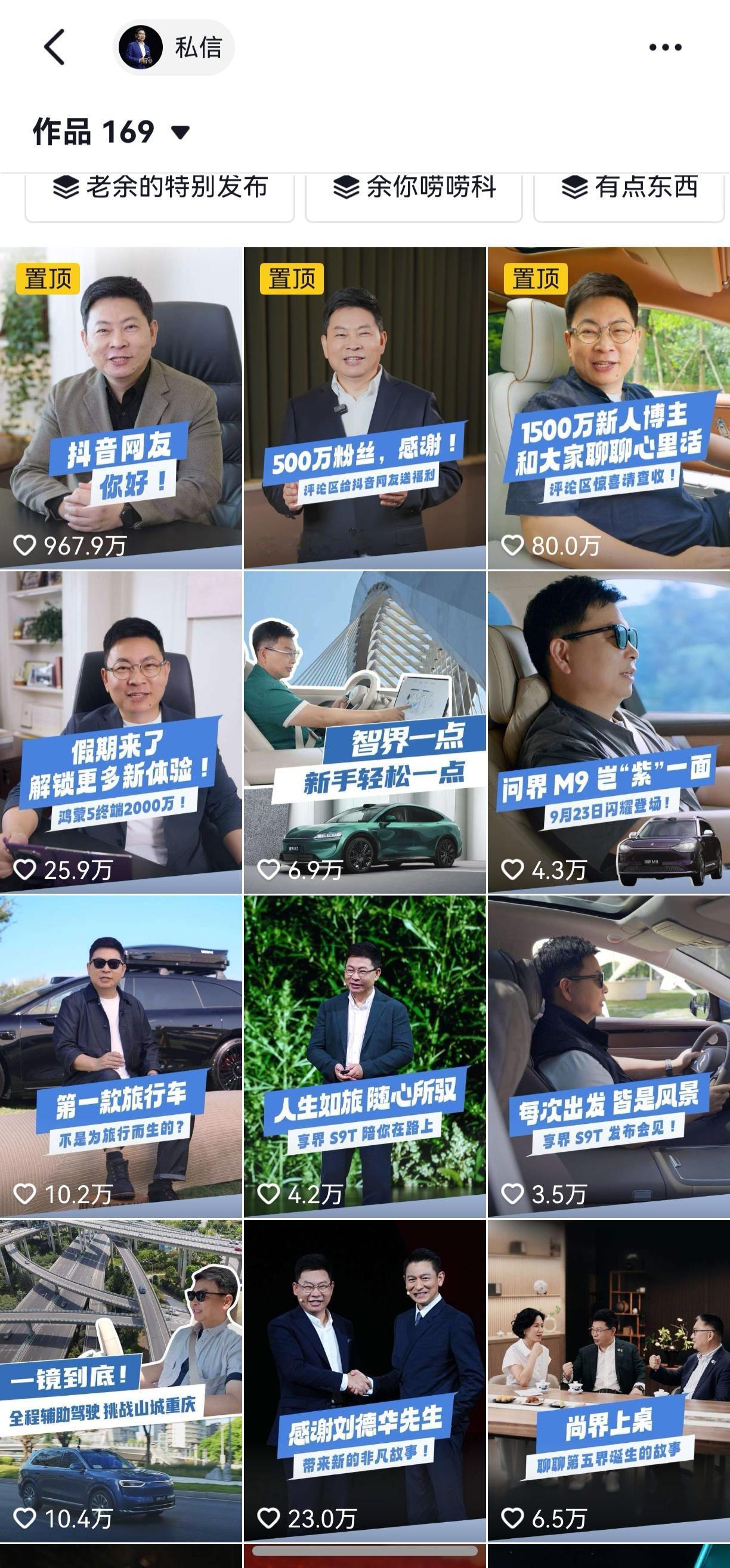 华为假期这么轻松的吗?余承东假期里抖音、WB等平台竟然都不发内容了,和隔壁的雷军相比,余承东这是真的休假了吗? 我看了一下最近比较活跃的何刚和靳玉志的账号,这几天里也就发了一条内容!余承东