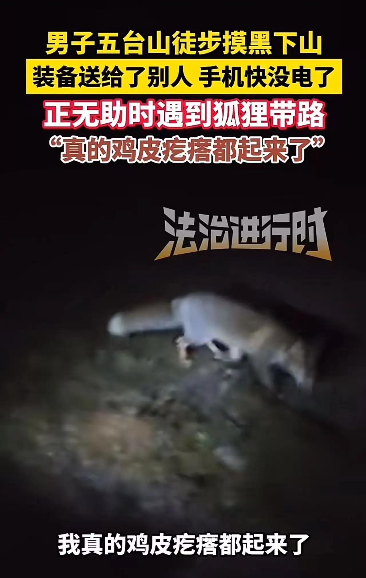 科学难以阐释!国庆期间,有一男子前往五台山游玩,天色渐黑下山时,不慎迷失了方向。就在他孤立无助之时,一只狐狸突然从他眼前窜过!令人诧异的是,这只狐狸竟为男子带路。男子心有余悸地表示:“真把我吓得浑身起鸡皮疙瘩!”网友们纷纷惊叹:“太有灵性了!” 这个故事满是神秘色彩与奇幻元素。男子于五台山迷路后,遇见一只为他带路的狐狸,这不禁让人联想到传统文化中狐狸所具备的灵性与神秘力量。在众多文化里,狐狸被视为智慧、灵巧的象征,甚至拥有超自然能力,能在人们迷失方向时予以指引。 这个故事也展现了人们对未知与神秘的好奇和敬畏,尤其是在自然与宗教圣地遇到这般“意外”奇遇时,更易让人感慨万千。网友那句“太有灵性了!”,充分表达了对狐狸神秘举动的惊叹与喜爱。 倘若你喜欢这个故事,不妨进一步展开想象,为狐狸增添些背景,比如它是否有特殊意义,或者男子后续还经历了哪些奇妙之事!