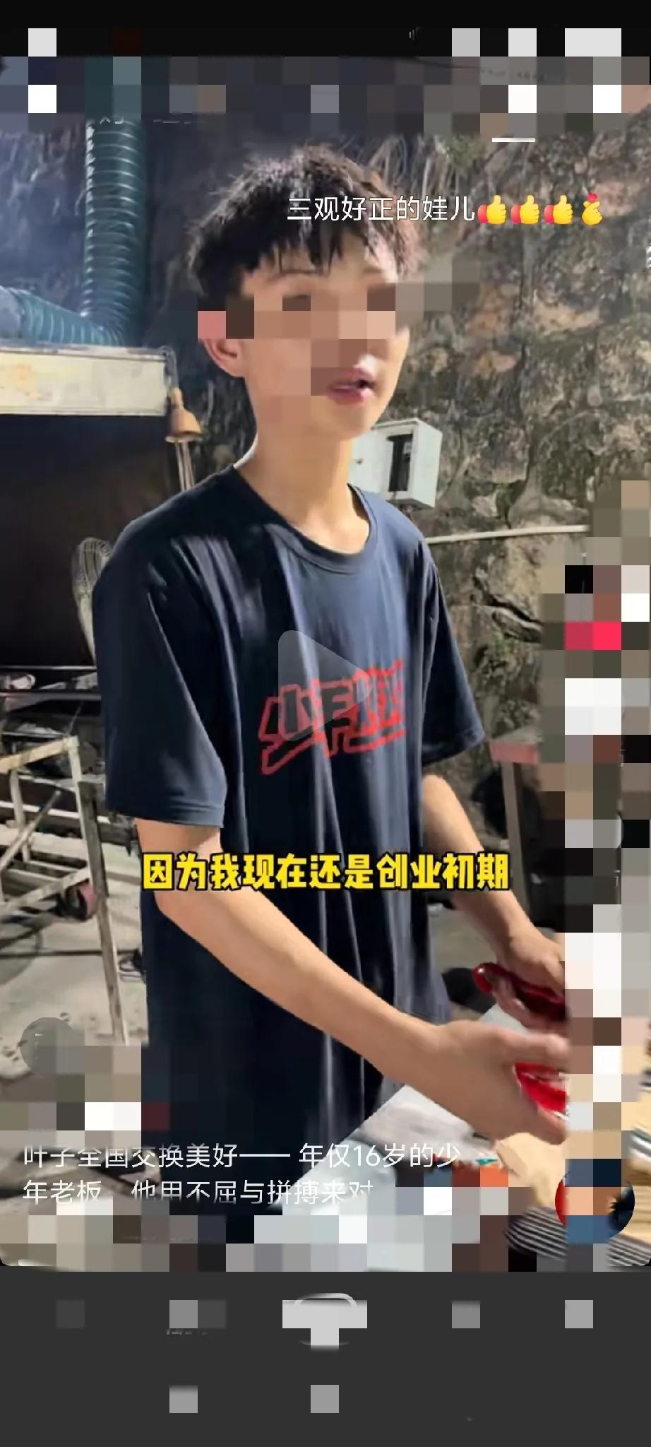 14岁学艺,16岁当老板。 说真的,我们的16岁到底在干什么呢? 但是他活的比我们大多数人都通透。 这么小的年纪有梦想有担当有勇气敢去闯,我们大多数人都还在上高中了,读书了。 有人问他为什么不读书,他说老师的口中的坏学生就是我。其实我们都明白读书不是唯一的,不可能每个人读书都很厉害的。总有差,有好的,有不好不坏的。 人没有一模一样的。我觉得他说的对,其实不在学校在外面也一样是学呀!学的不是课本的 是现实生活的而已,人的一生就是在不断的学习。 有人问他,有没有想过找一个女朋友? 我希望我有所成就的时候,你再来跟着我,而不是我在吃苦的时候。跟着我吃苦。宁愿我累也不愿家人累。 梦想是买辆迈巴赫,能带父母环游世界。 改变不了现实,那我们就改变自己。 我的一生没有敌人,都是我的导师。 好与坏也罢,都很积极的乐观去面对。 我挺好奇迈巴赫是多少💰? 你16岁的时候在干什么?