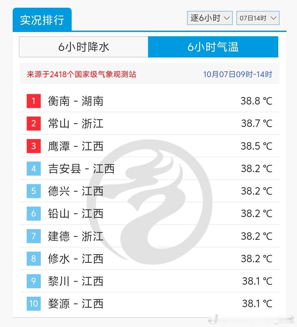 【高温和降温】今天截至14时最高,江西湖南浙江站点包揽高温榜前十,湖南衡南38.