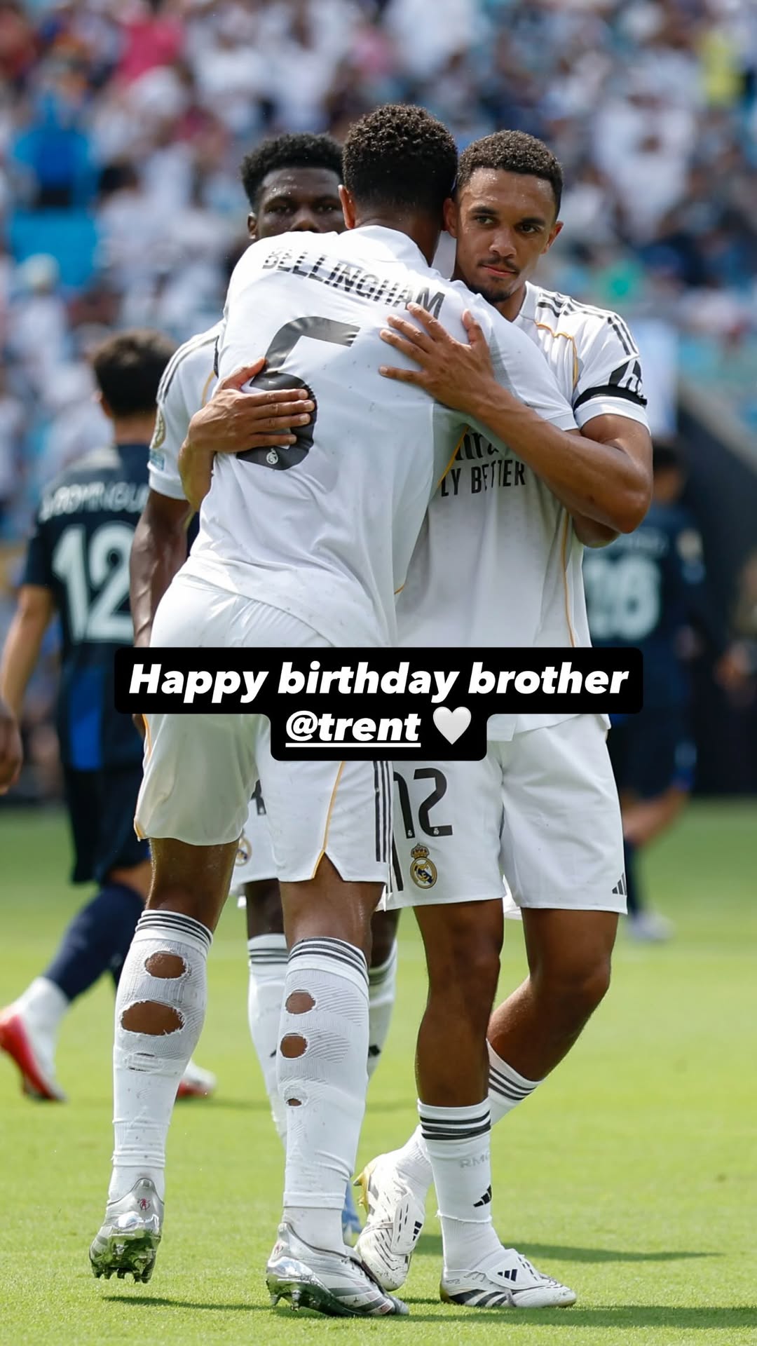 阿诺德27岁生日,贝林厄姆社媒:生日快乐我的兄弟