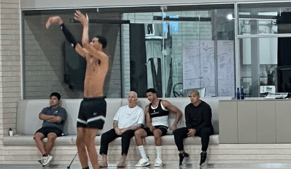 今日,马刺前任主帅波波维奇现身球队训练营观看了球队投篮训练。