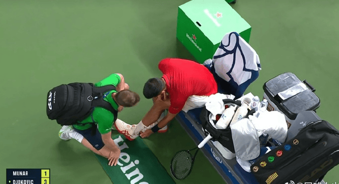 德约科维奇申请医疗暂停,左脚接受按摩并吃了止疼药
