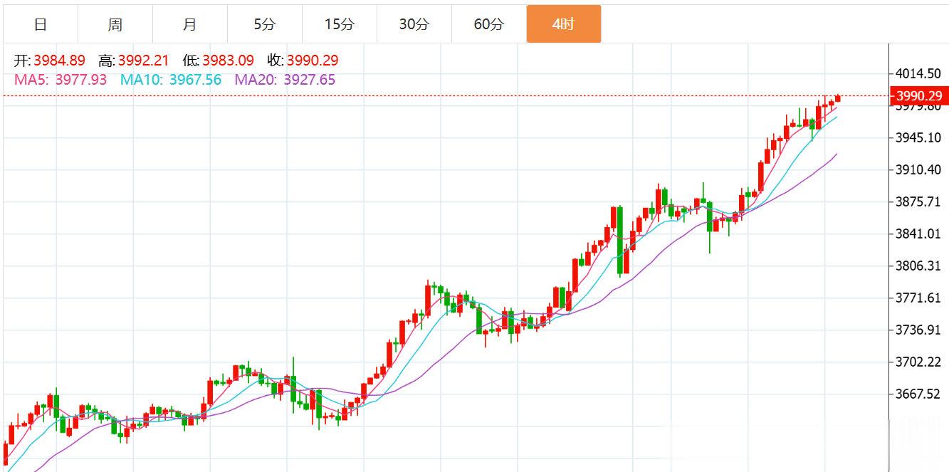 黄金技术面分析:黄金昨天早盘开盘之后就直接上涨,也没有给到机会,黄金午后持续震荡,又是在蓄势,黄金欧盘回踩3940一线企稳上涨,美盘黄金3960直接顺势跟进做多,黄金最终还是如期上涨,再次创历史新高。黄金牛市还在继续驰骋,黄金回落就是继续给多的机会。黄金目前在4小时级别走势上继续沿着短周期均线维持较好的震荡上行走势,美盘之后的一波探底也正好完成技术形态修复,黄金虽暂时维持在高位的震荡但是继续刷新高几乎已经板上钉钉,过去的一段时间内这样的技术形态,这样的走法应该见了不少了。即便是昨晚维持在高位的窄幅震荡,早上开盘大概率又是直接拉升的节奏。小时级别走势上目前暂时维持在高位震荡,小级别周期走势上出现一定程度的背离,在短期走势上还是继续维持个高位震荡偏强走势。综合来看,今日黄金短线操作思路上贺博生建议以回调做多为主,反弹高空为辅,上方短期重点关注4000-4010一线阻力,下方短期重点关注3960-3950一线支撑。