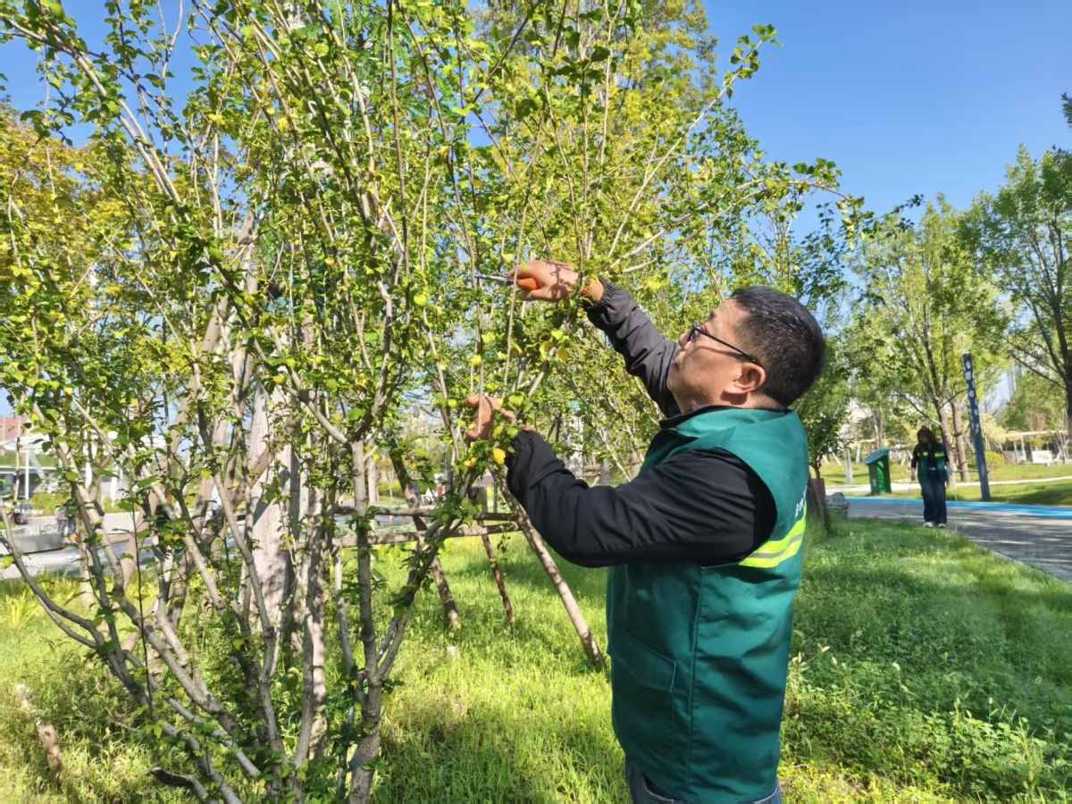 “双节”是举国欢庆之时,绿化服务中心工作人员范文忠却早早身着工装,带着工具奔赴东三环自管游园。他深知节日期间游客众多,园内环境是城市形象窗口,容不得半点马虎。