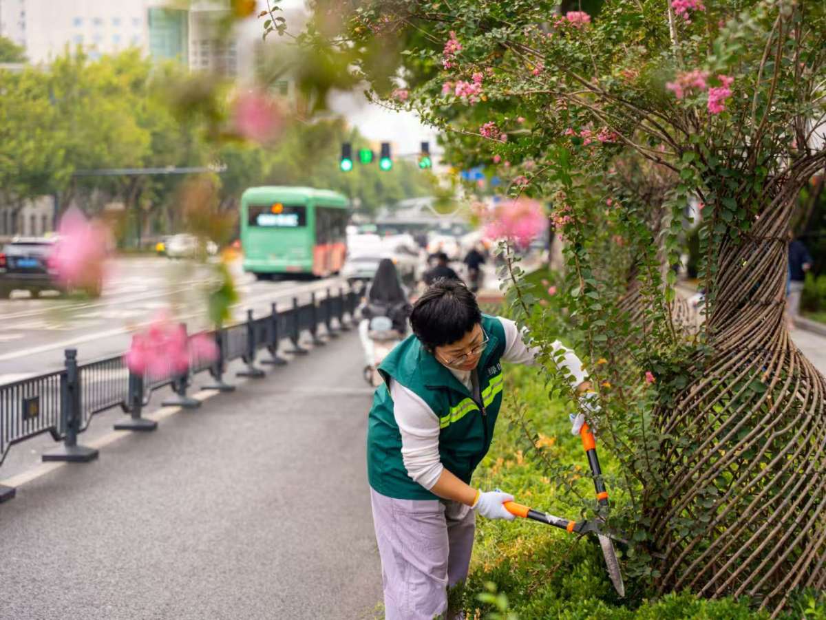 她常冒风雨跟车跑现场,实时掌握管养动态,对枯枝未清理、植被长势差等问题当场督促整改,秉持“植物全生命周期养护”理念。双节期间她紧抓季节时效,组织开展秋季补植补栽、落叶杂草清理,提前排查病虫害隐患,为后续行道树休眠期修剪做准备。当市民享受团圆时,她用脚步丈量绿地,以“绣花”功夫守护街道景观,让节日里的金水始终绿意盎然。