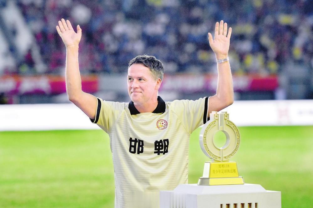 8月24日,在邯郸U18青少年足球挑战赛开幕式上,国际球星欧文向球迷致意。