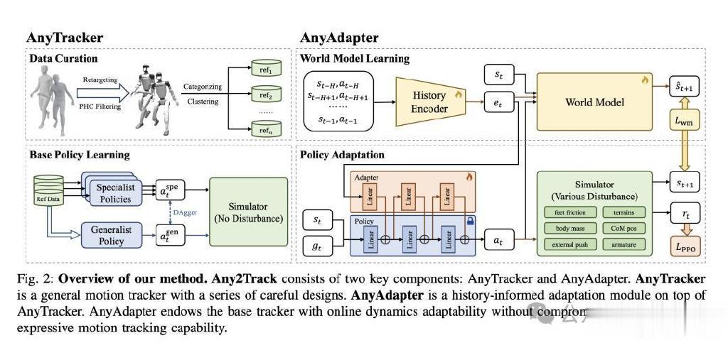 总的来说,Any2Track将动作捕捉的学习过程解耦为AnyTracker和AnyAdapter两个阶段。