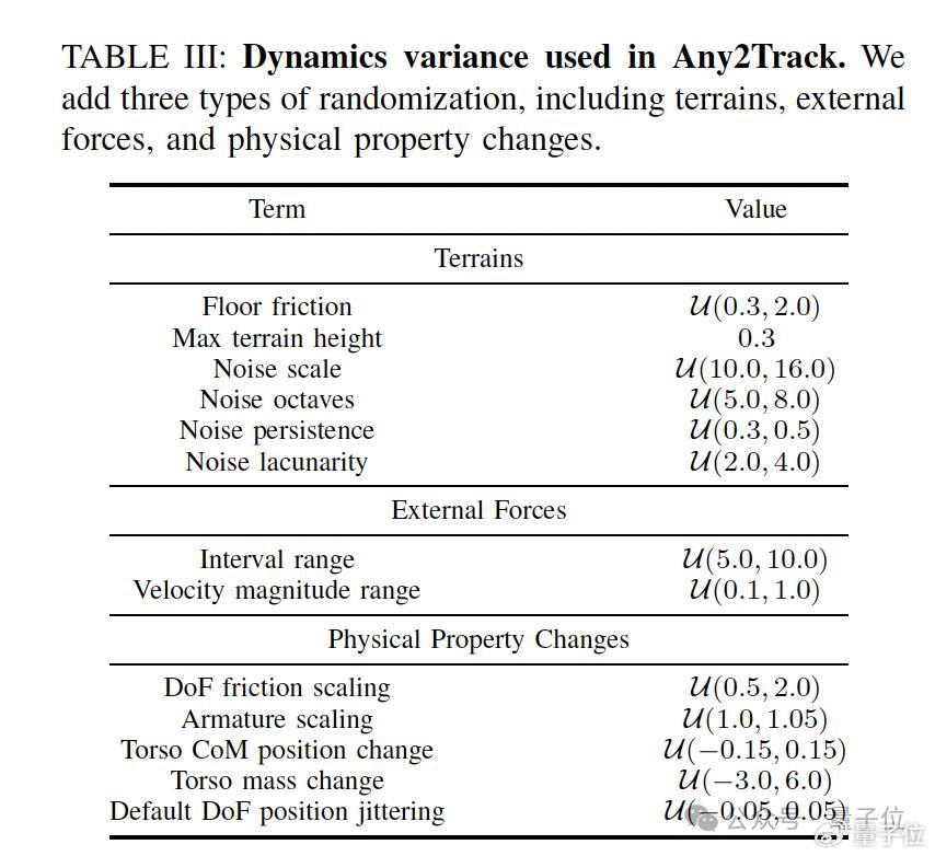 (注:为实现通用动作追踪,研究团队使用了AMASS和LAFAN1运动数据集的组合作为训练数据。此外,作为基础策略训练,此阶段不引入任何动态随机化,以避免追踪性能下降。)