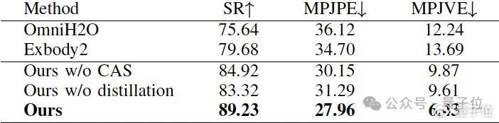 这一举超越了ASAP、GMT等传统方法,实现了零样本sim2real,让机器人做起复杂动作来,依旧稳如老狗。