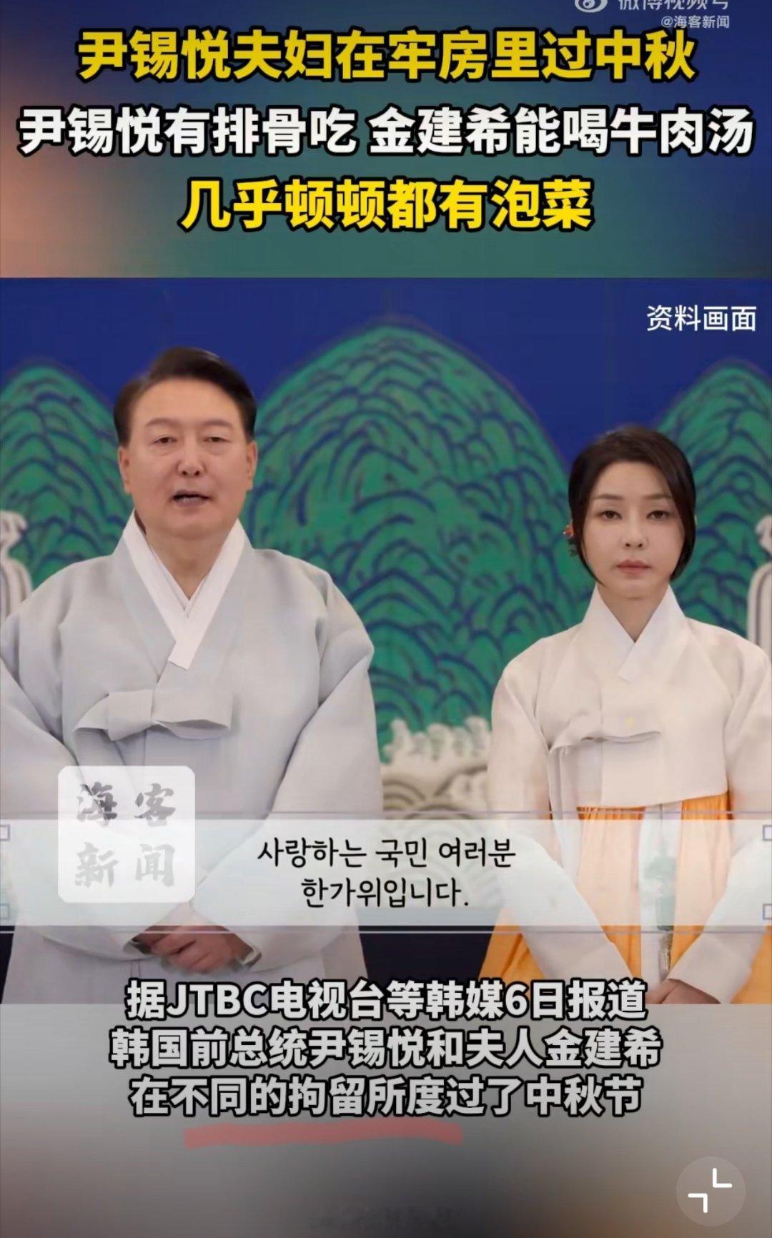 尹锡悦夫妇中秋节牢饭曝光尹锡悦夫妇在牢房里过中秋