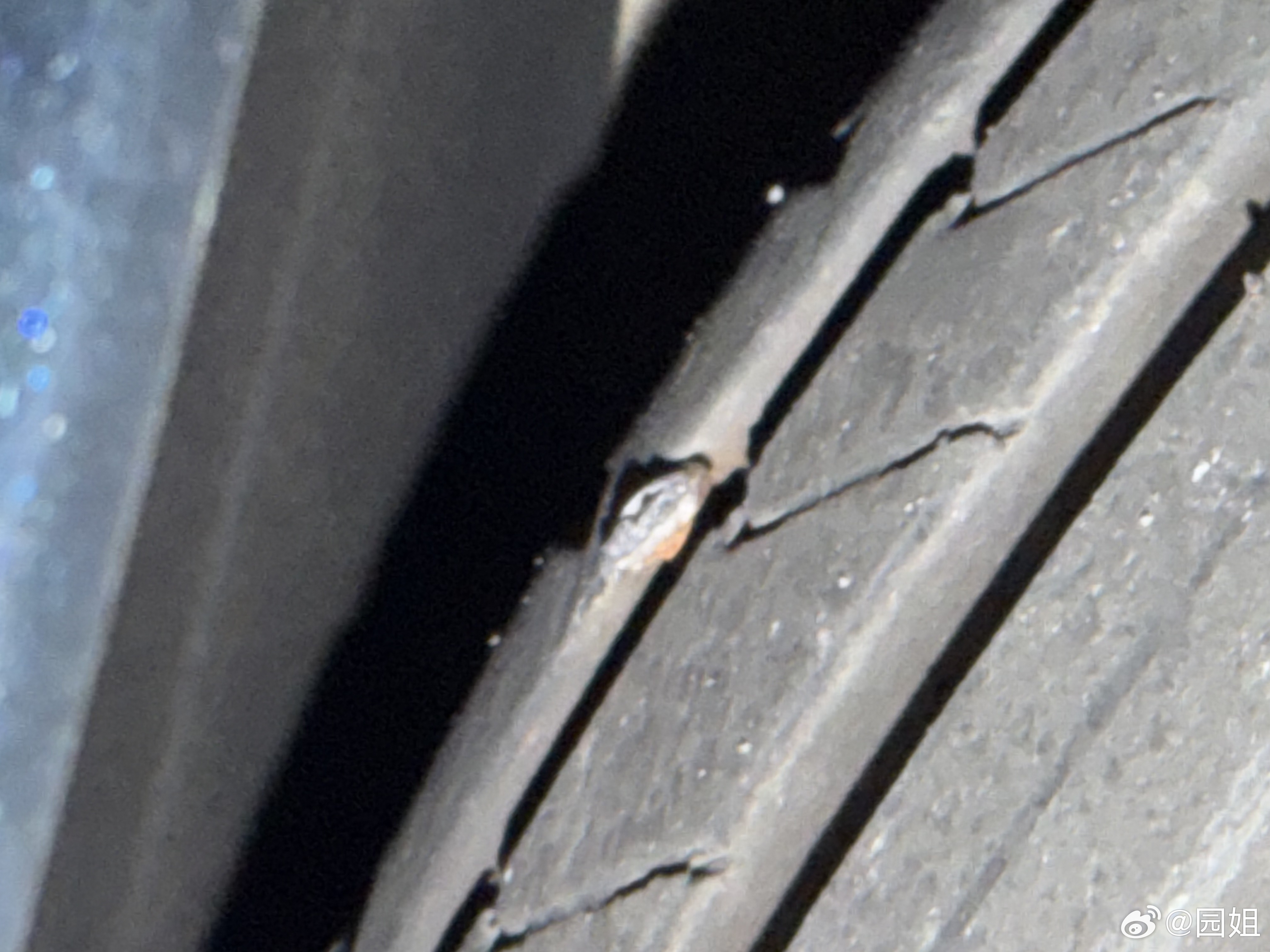 看了下胎压,感觉不好,看了下轮胎果然扎钉子了,今年都扎好几次了[允悲]
