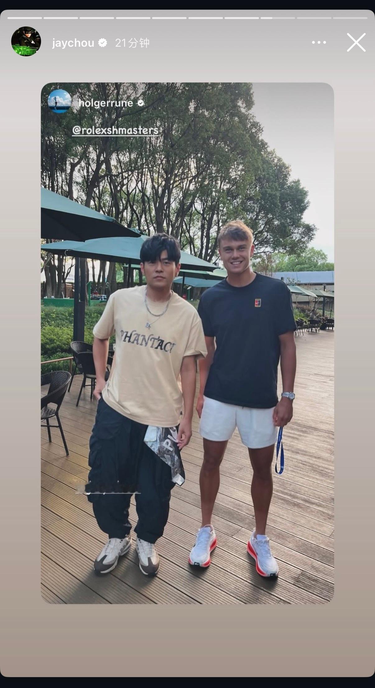 上海劳力士大师赛 网球运动员德米纳尔和鲁内分享与杰伦&昆凌的合照杰伦纷纷转发🎾