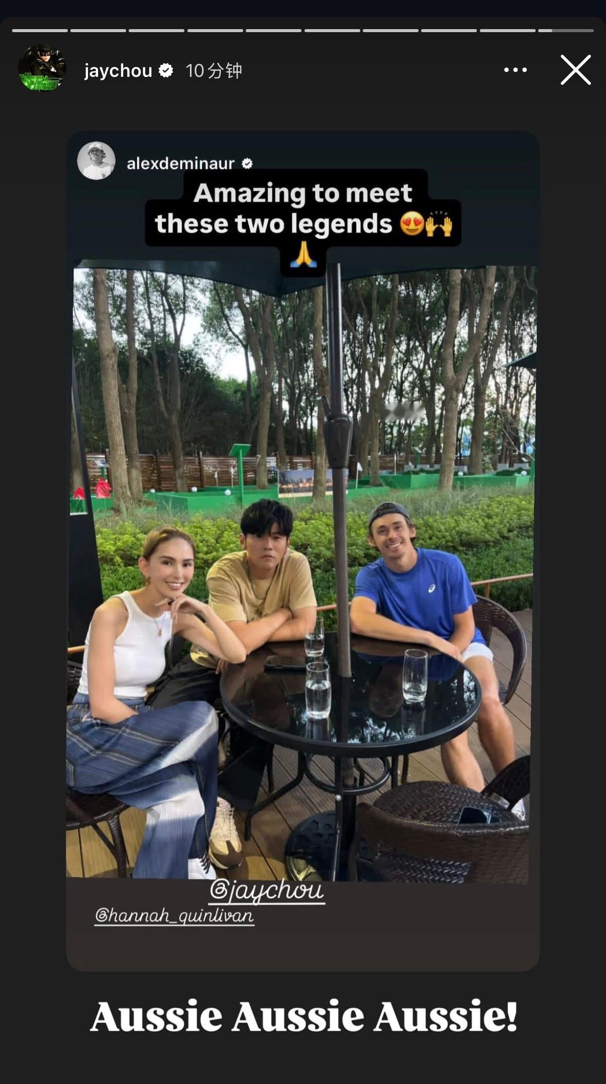 网球运动员德米纳尔和鲁内分享与杰伦&昆凌的合照