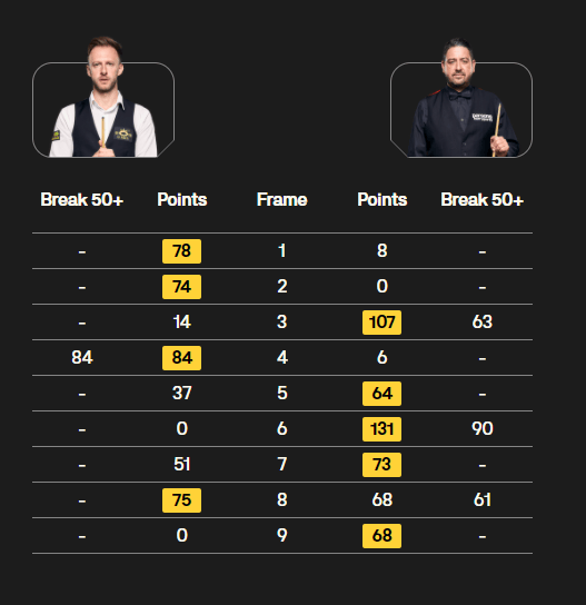 特鲁姆普开局3-1领先,之后史蒂文斯连追三局。第8局,特鲁姆普在被超11分的情况下追回,通过延分争黑挽救赛点。决胜局,史蒂文斯几次上手锁定胜局。